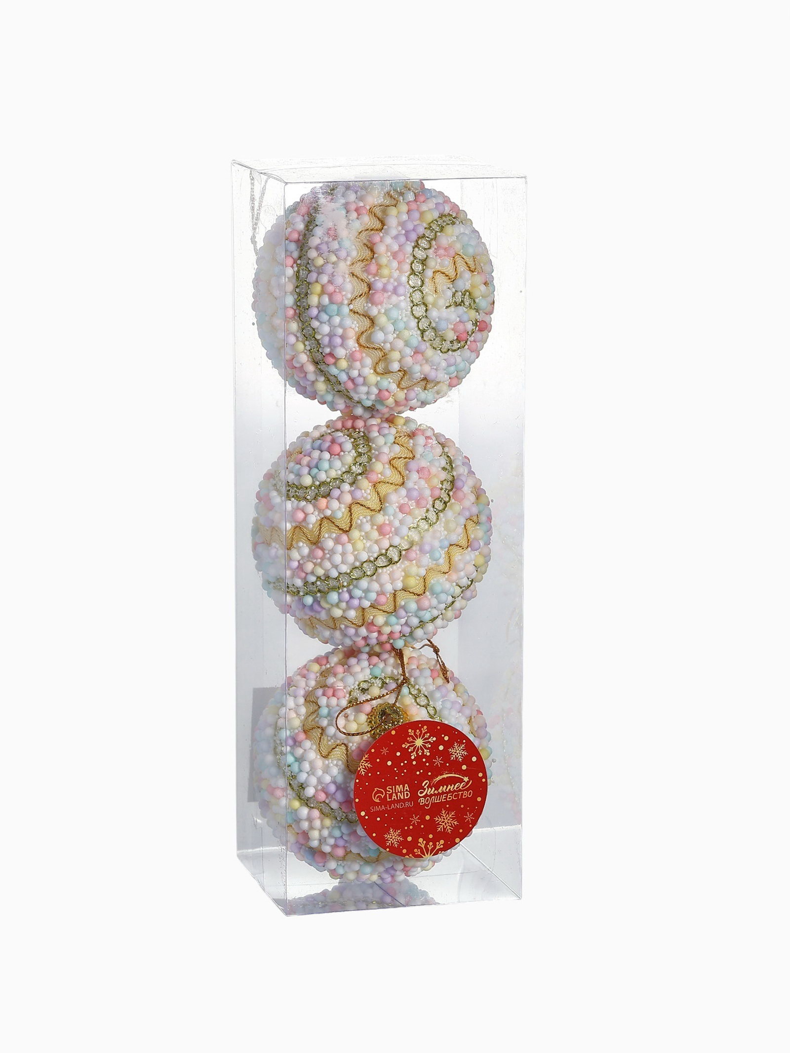 Ёлочные игрушки "Абель галант", шары новогодние, d=8 см, 3 шт., колор, 8x8 см., Зимнее волшебство, Китай