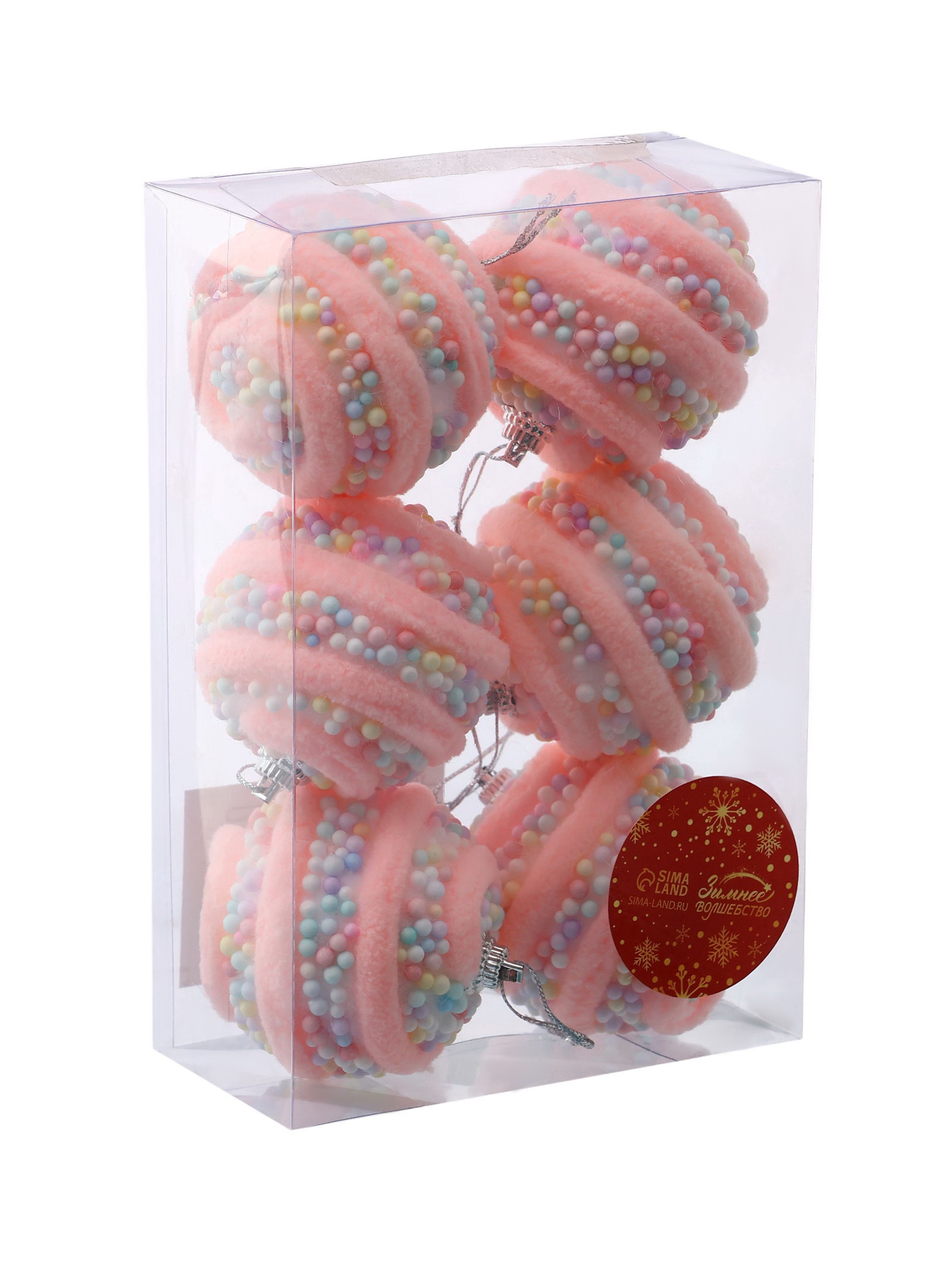 Ёлочные игрушки "Маттео", шары новогодние, d=6 см, 6 шт., розовый, 6x6 см., Зимнее волшебство, Китай
