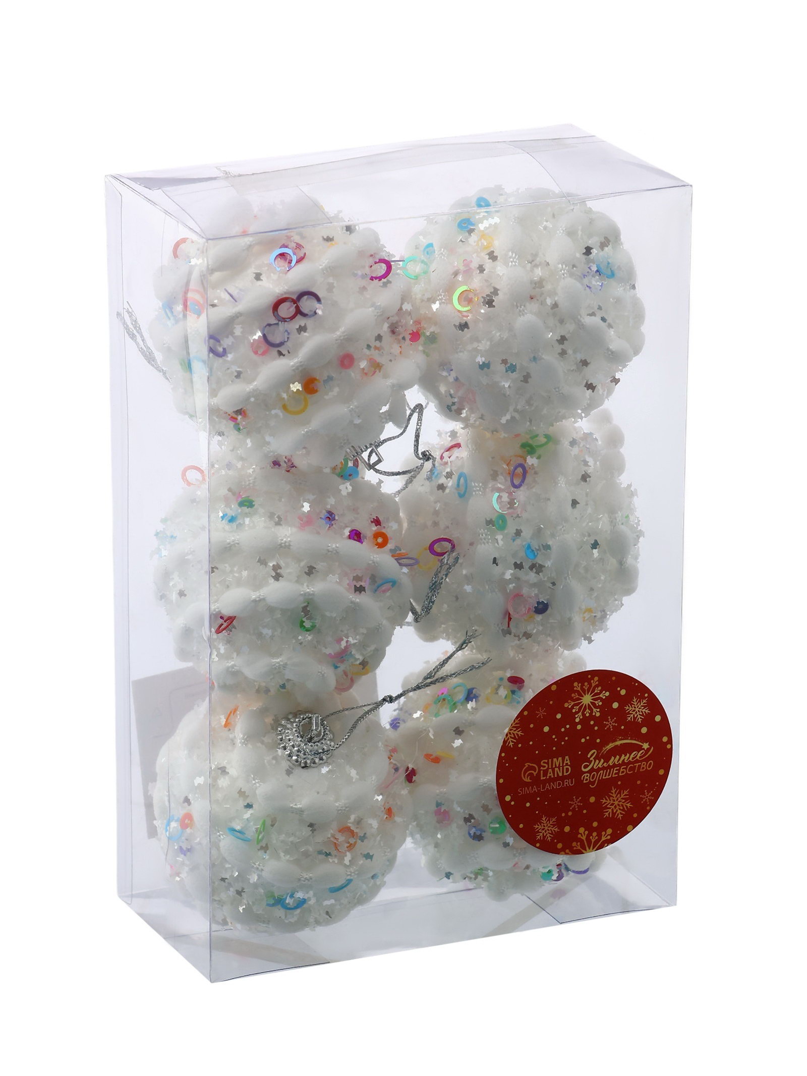 Ёлочные игрушки "Акли", шары новогодние, d=6 см, 6 шт., белый, 6x6 см., Зимнее волшебство, Китай