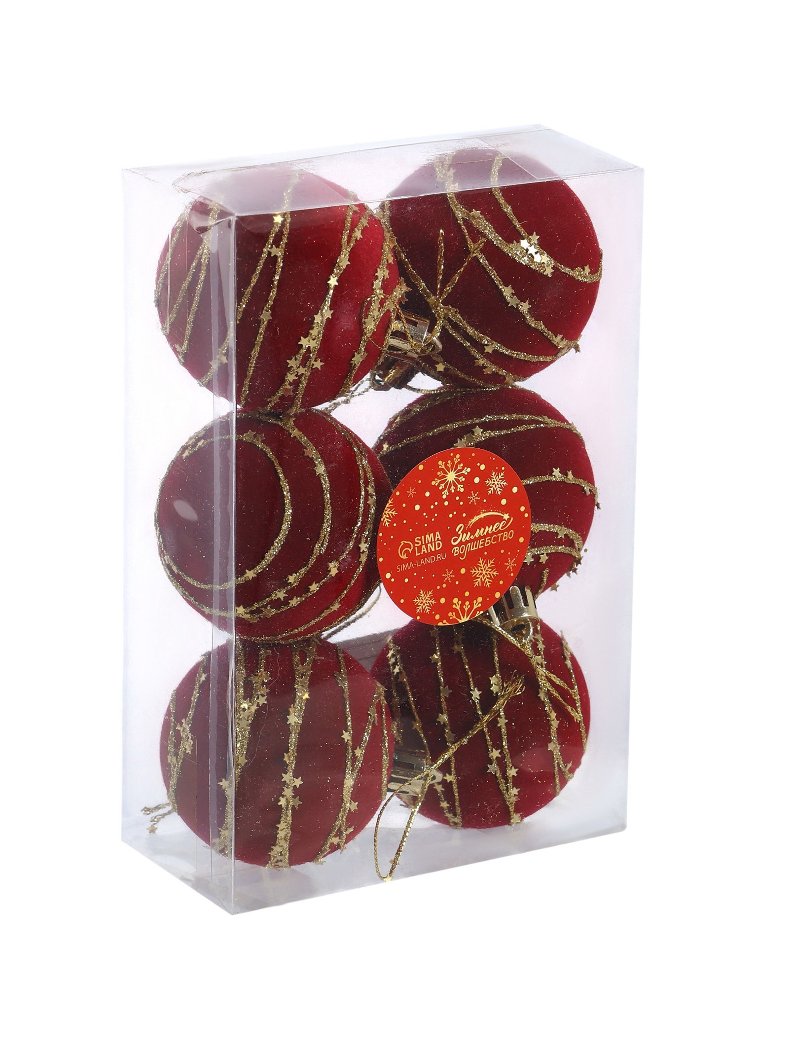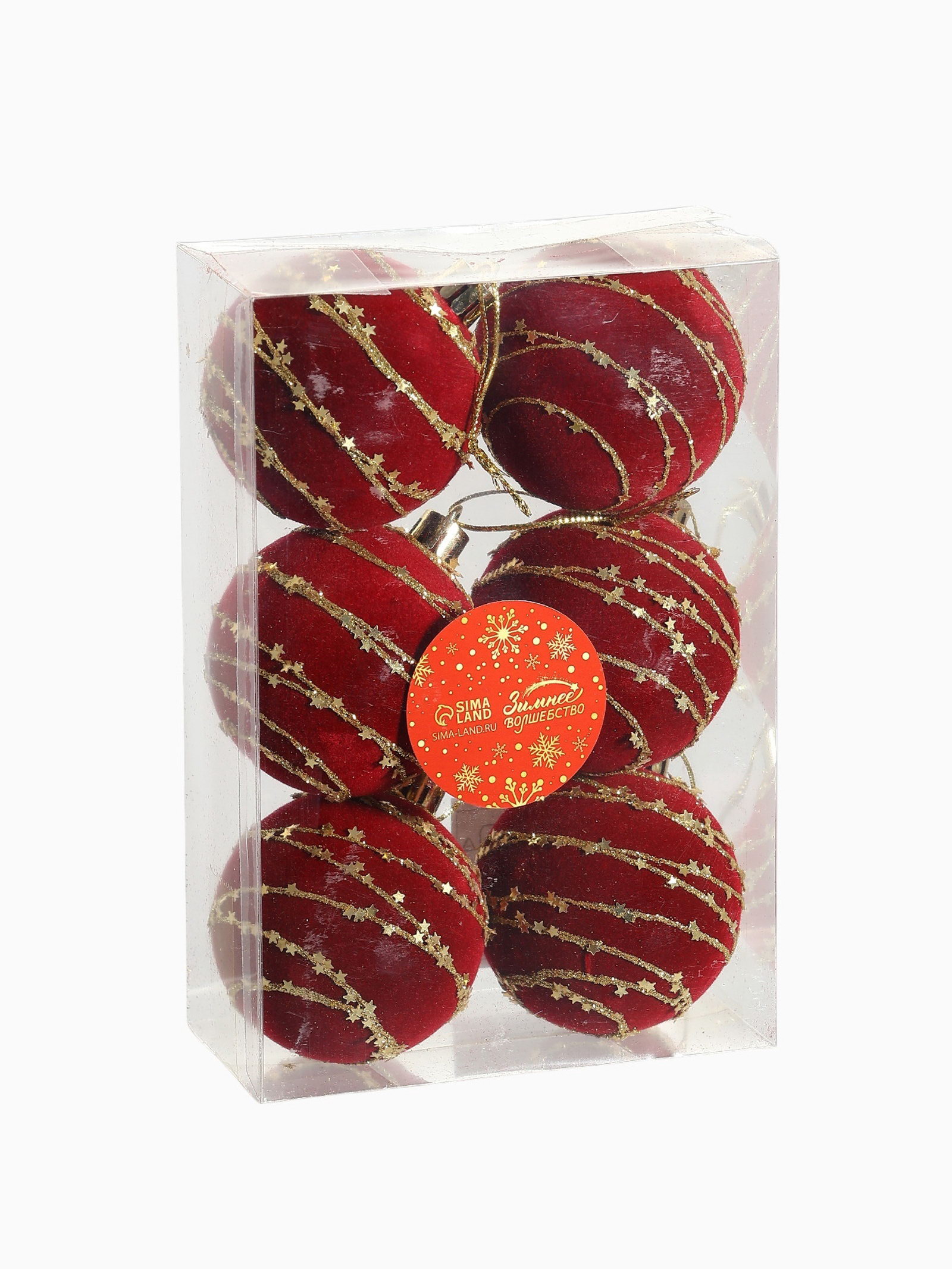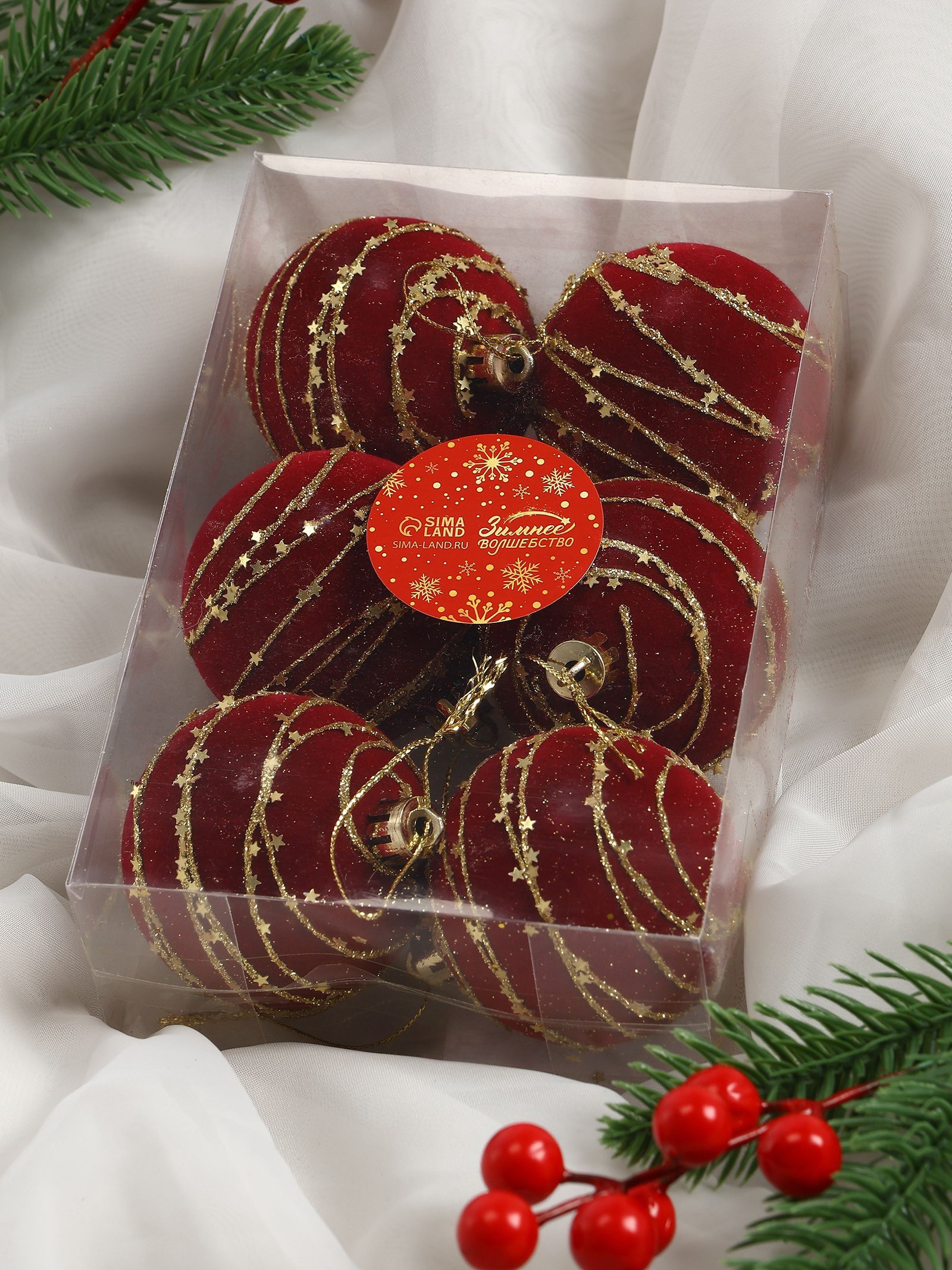 Ёлочные шары "Бархат. Фестиваль", новогодние, d=6 см, 6 шт., орбита, красный, 6x6 см., Зимнее волшебство, Китай