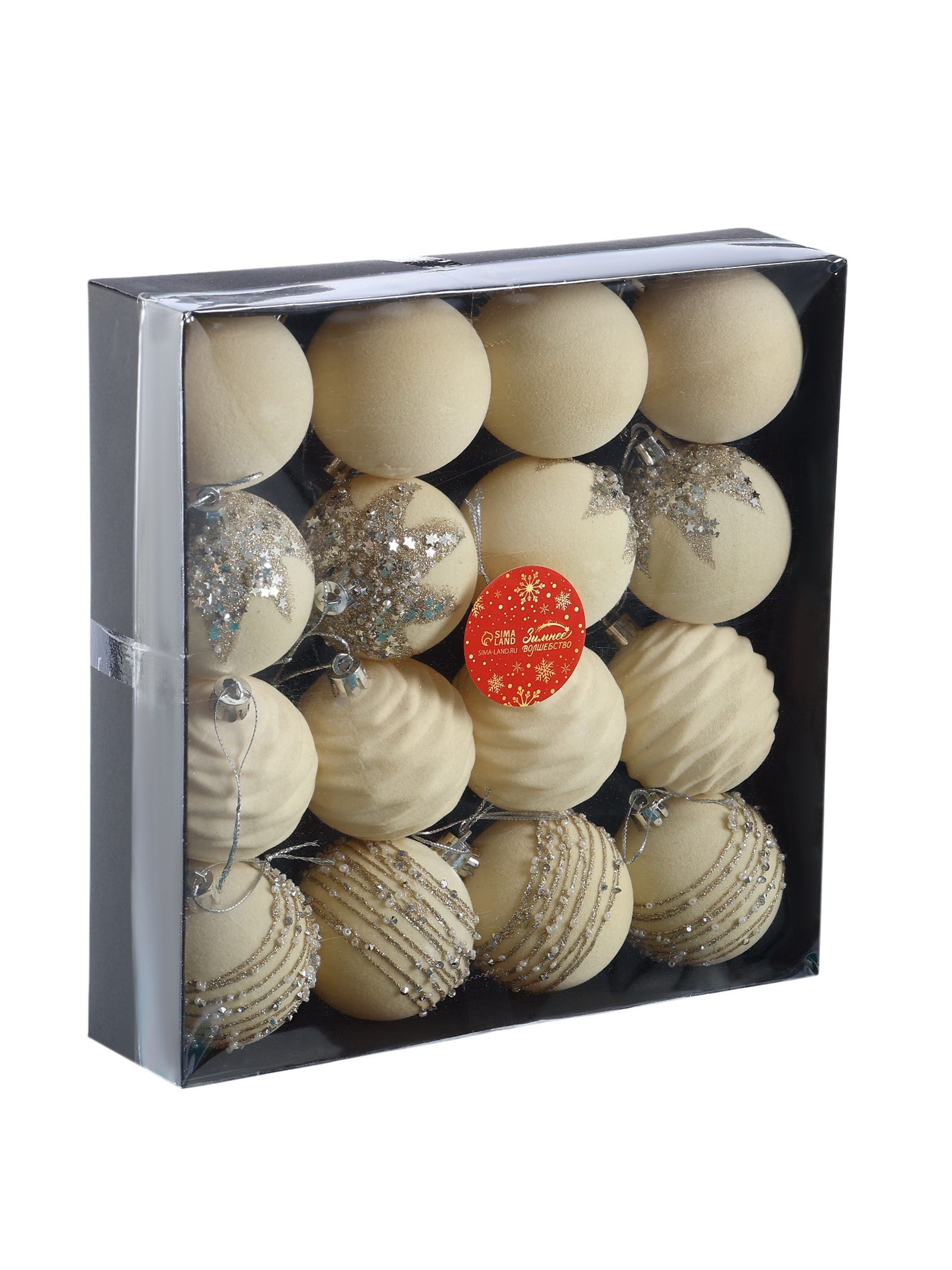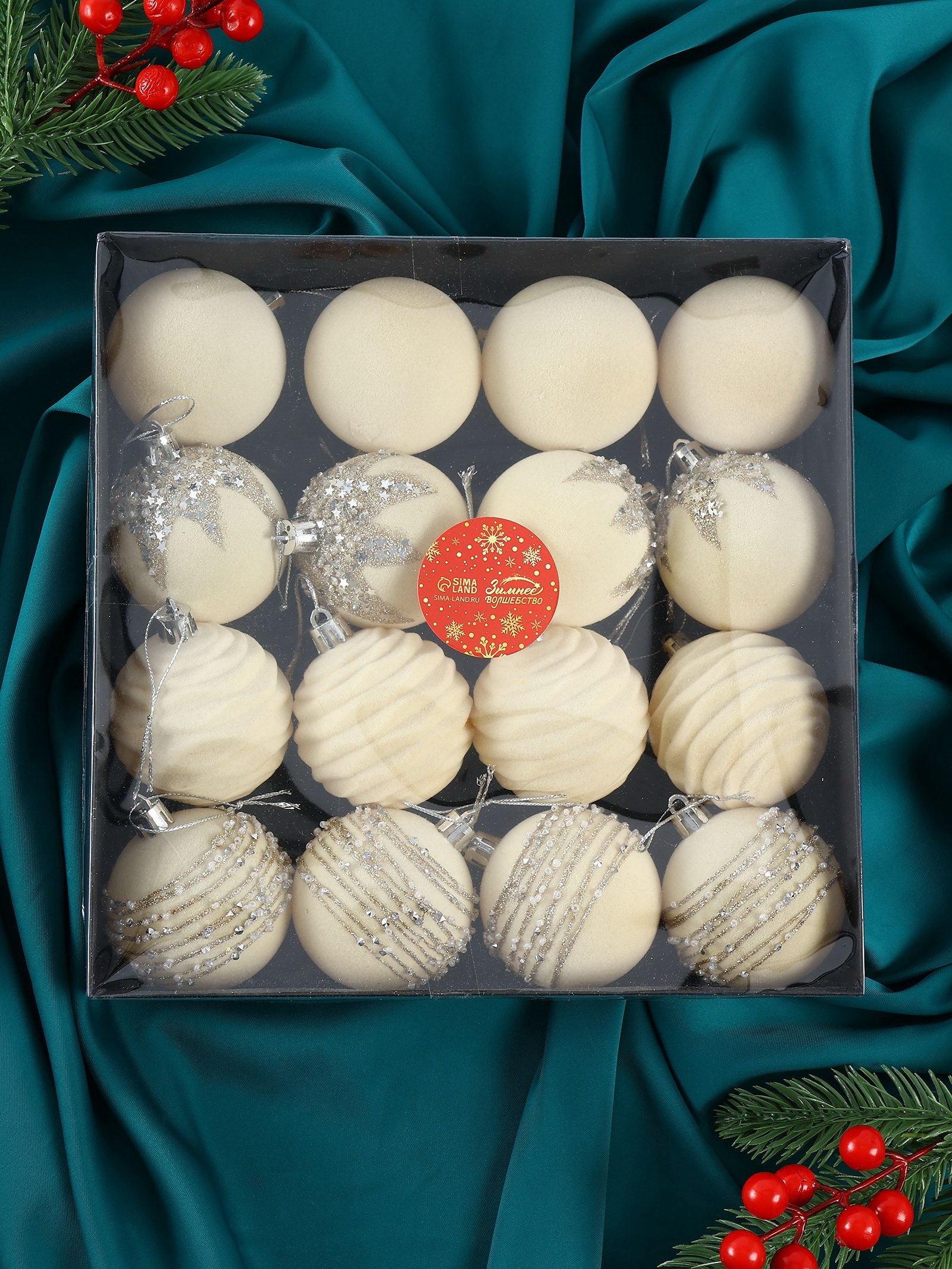 Ёлочные шары "Бархат. Маскарад", шары новогодние, d=6 см, 16 шт., белый, 6x6 см., Зимнее волшебство, Китай