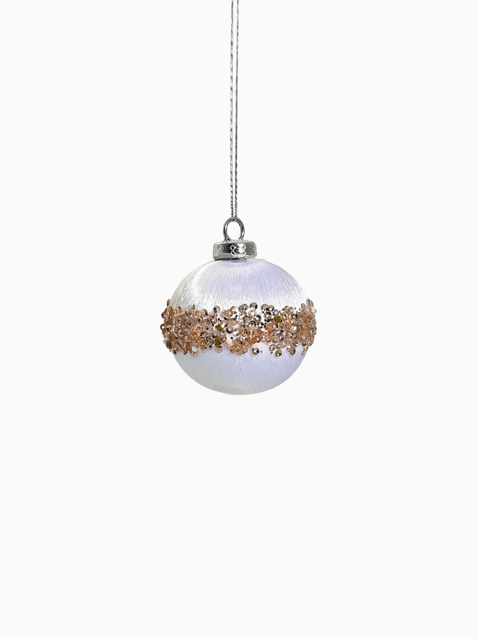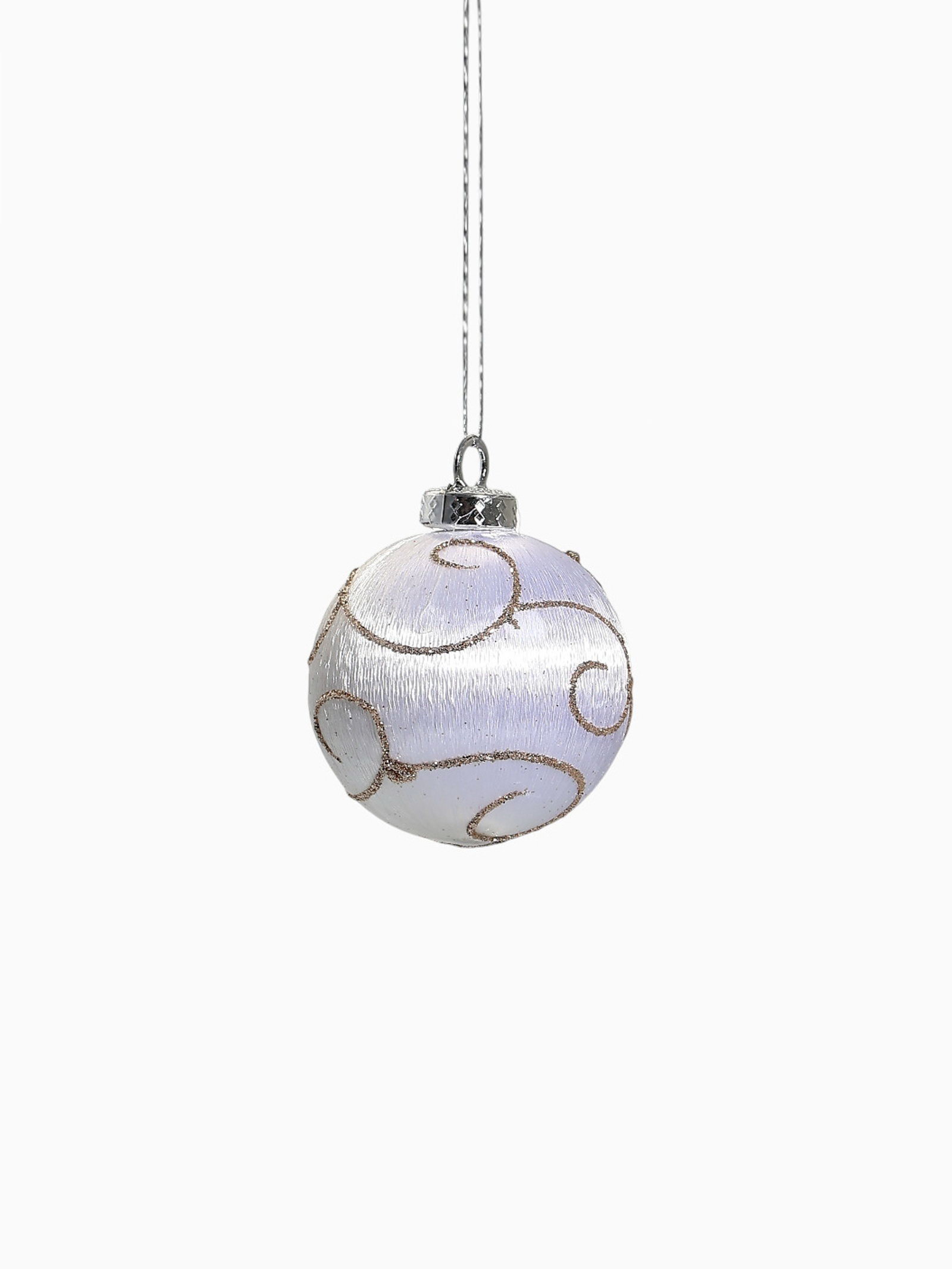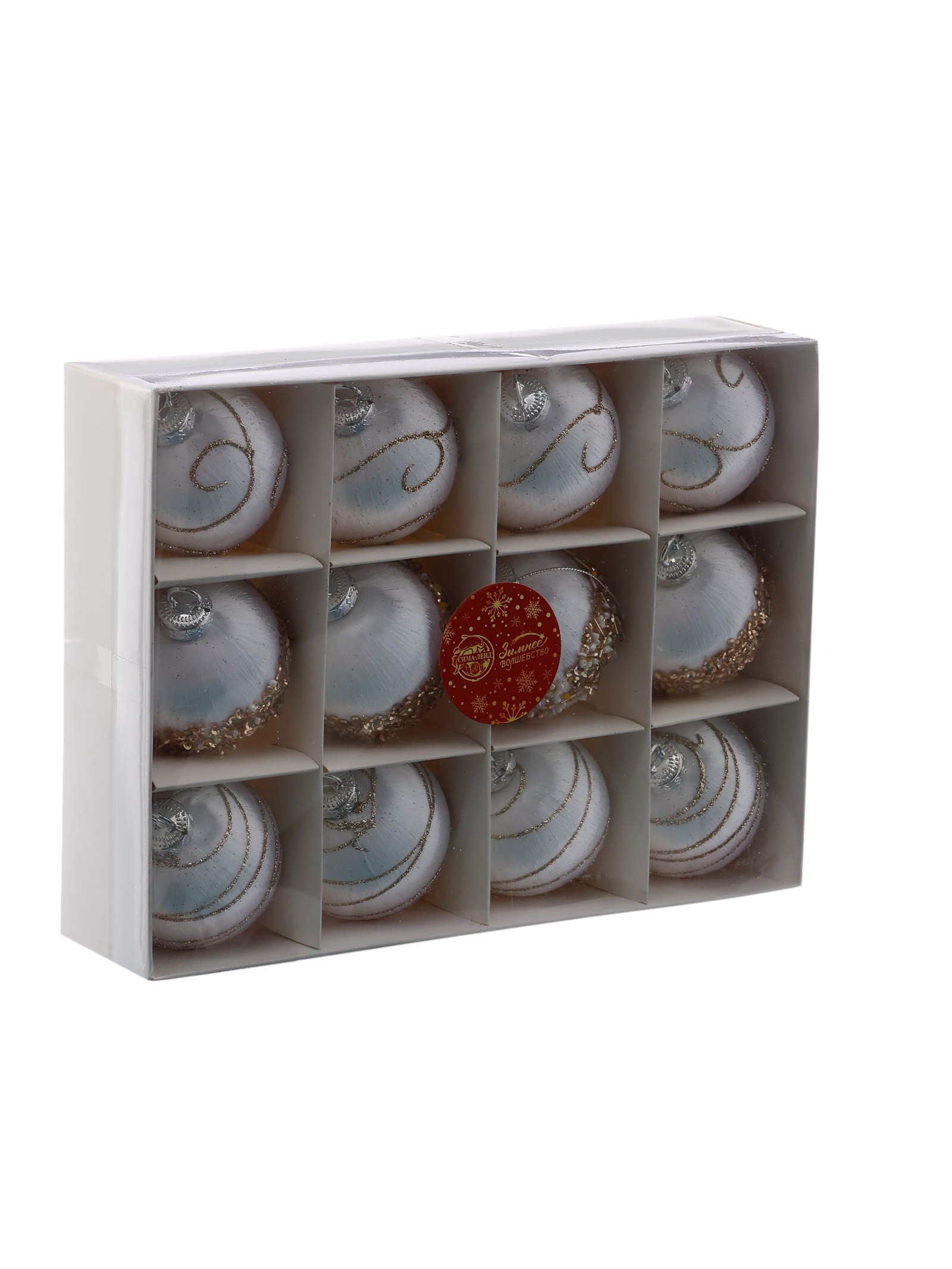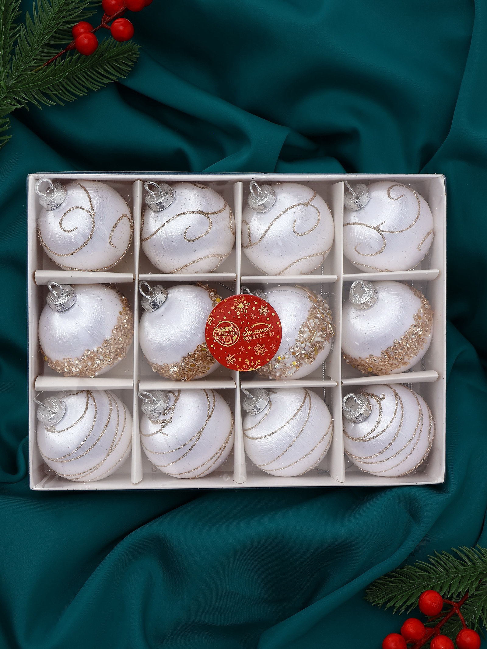 Ёлочные игрушки "Капризы зимы", шары новогодние, d=6 см, 12 шт., золотистая посыпка, белые, 6x6 см., Зимнее волшебство, Китай