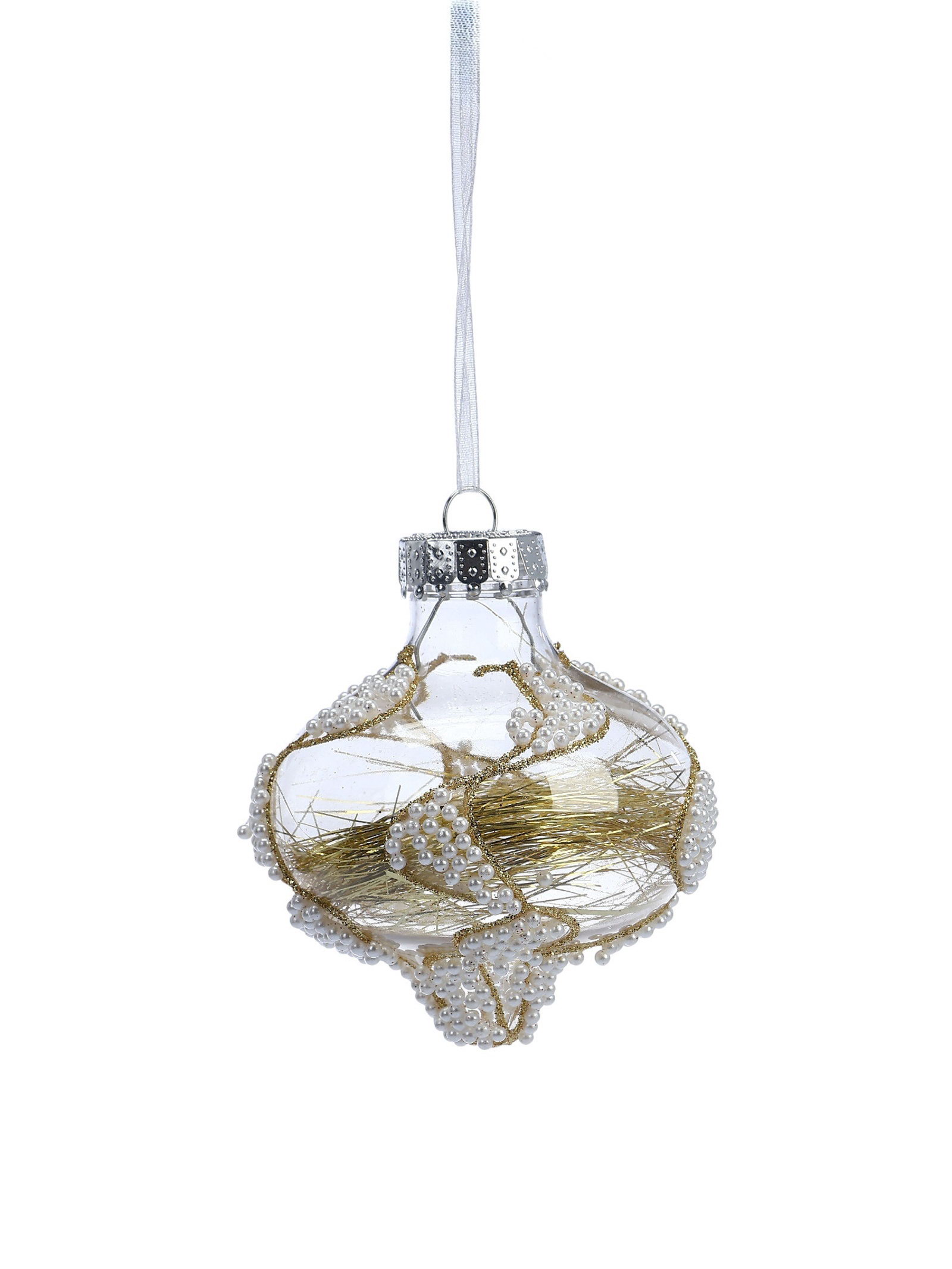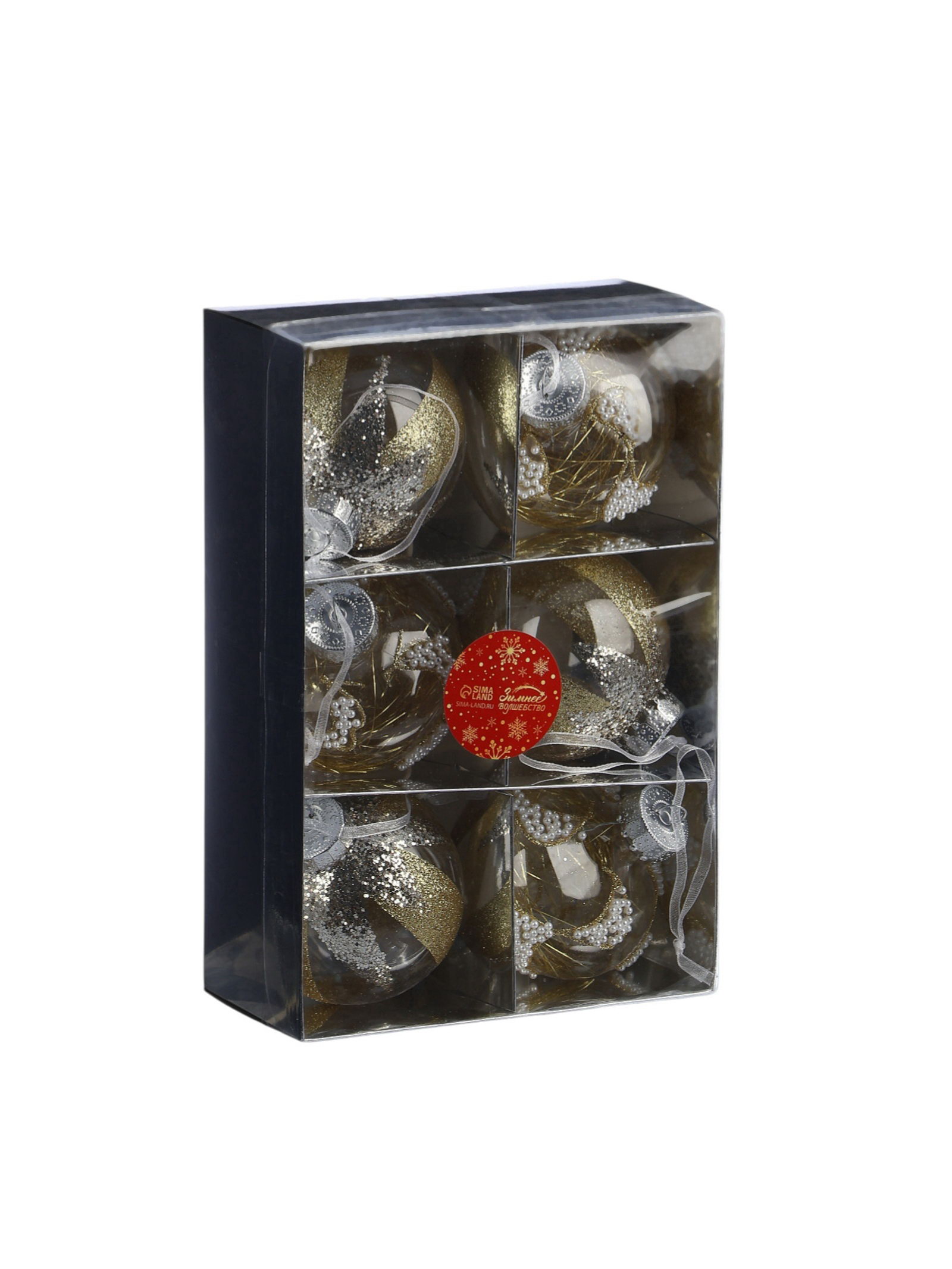 Ёлочные шары новогодние "Мелвин", набор 6 шт., d=8 см, прозрачный/бело-золотой, 8x8 см., Китай