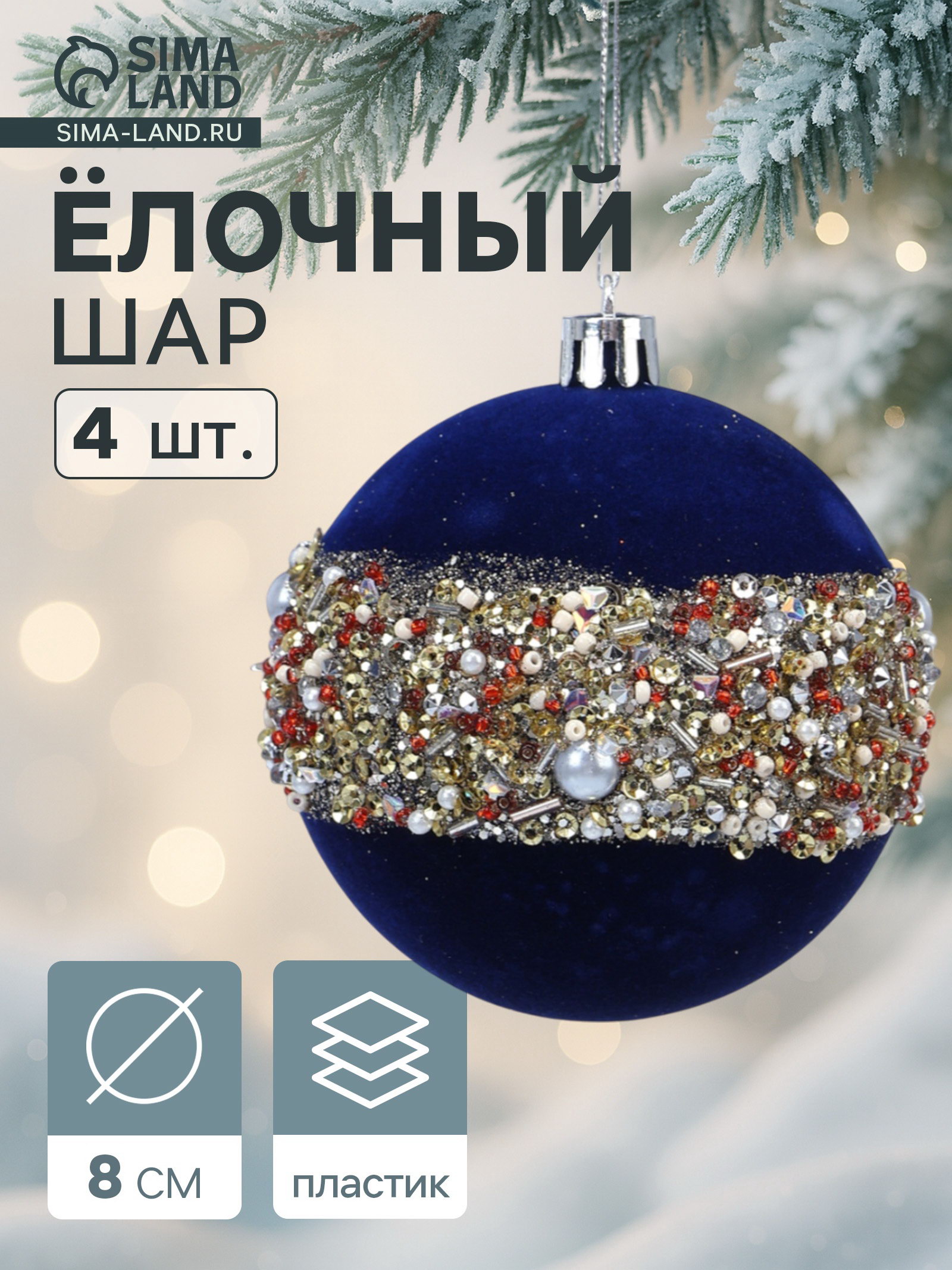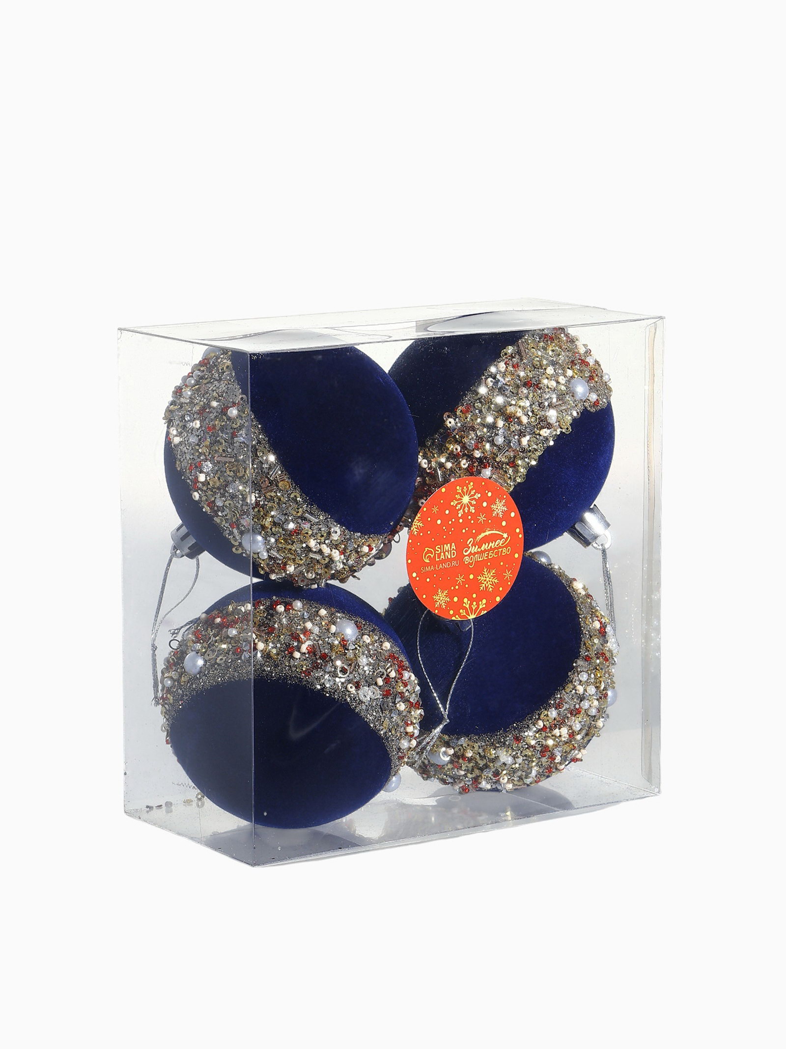Ёлочные шары новогодние "Освин", набор 4 шт., d=8 см, синий, 8x8 см., Китай