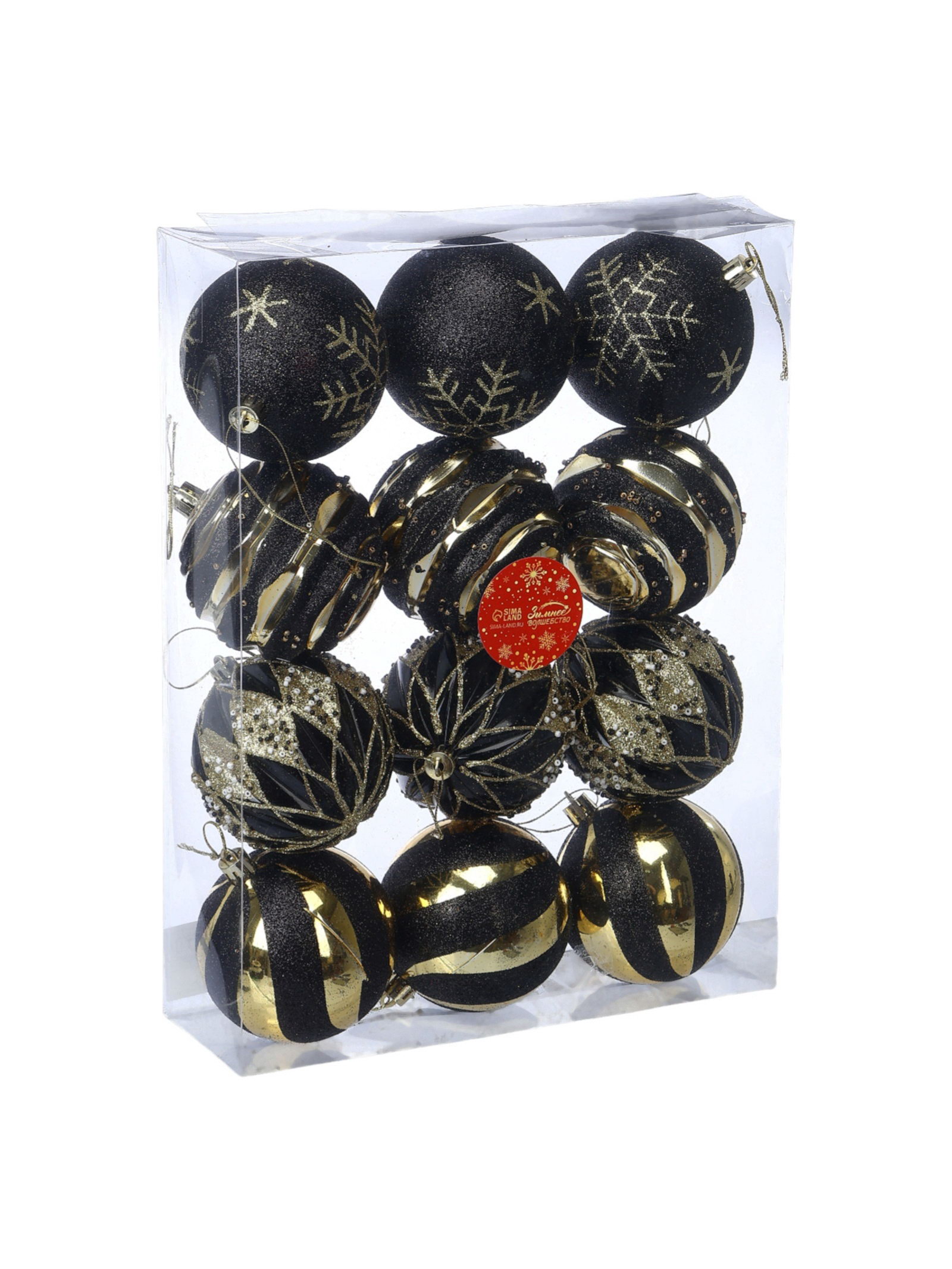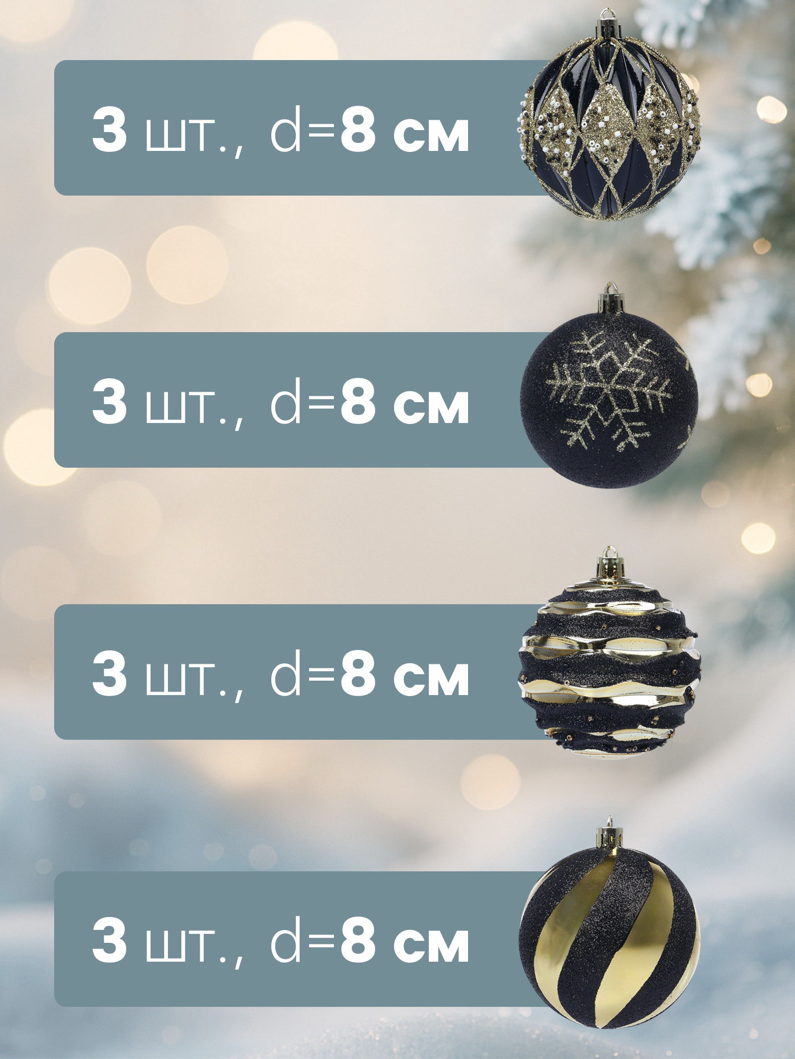 Ёлочные шары новогодние "Савьер", набор 12 шт., d=8 см, чёрно-золотой, 8x8 см., Китай