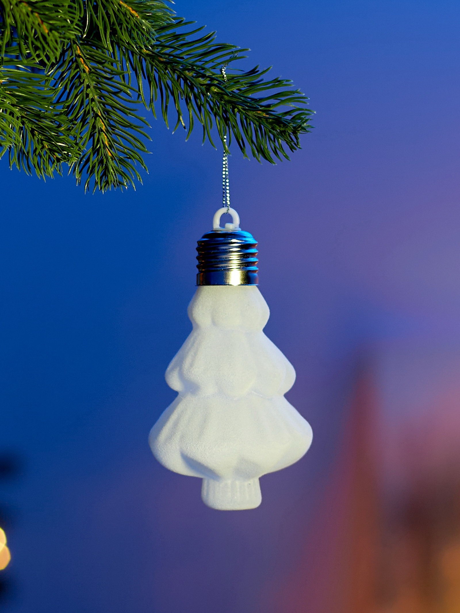 Елочный шар "Бархатная елочка" 12x8 см, 1 LED, от батареек LR44x3, свечение тёплое белое, 8x12x8 см., Luazon Lighting, Китай