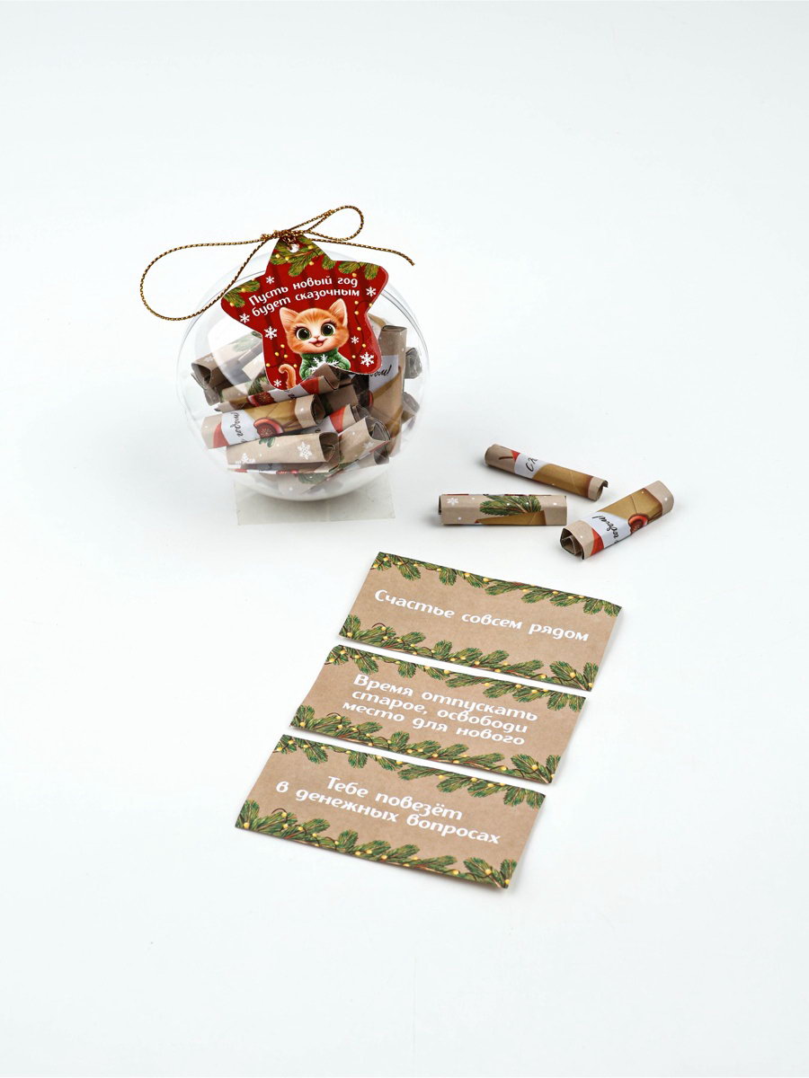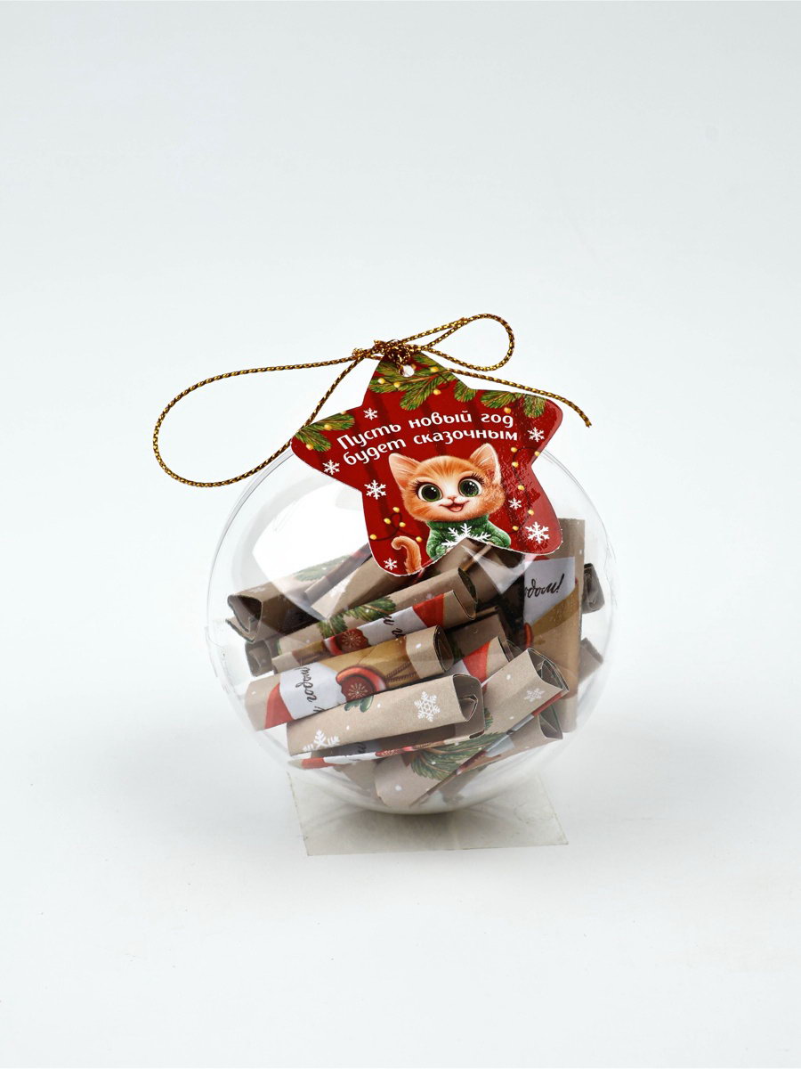 Елочная игрушка со свитками "Новогодний котик", 30 свитков, 8x8.2x8.2 см., Сима-ленд, Китай