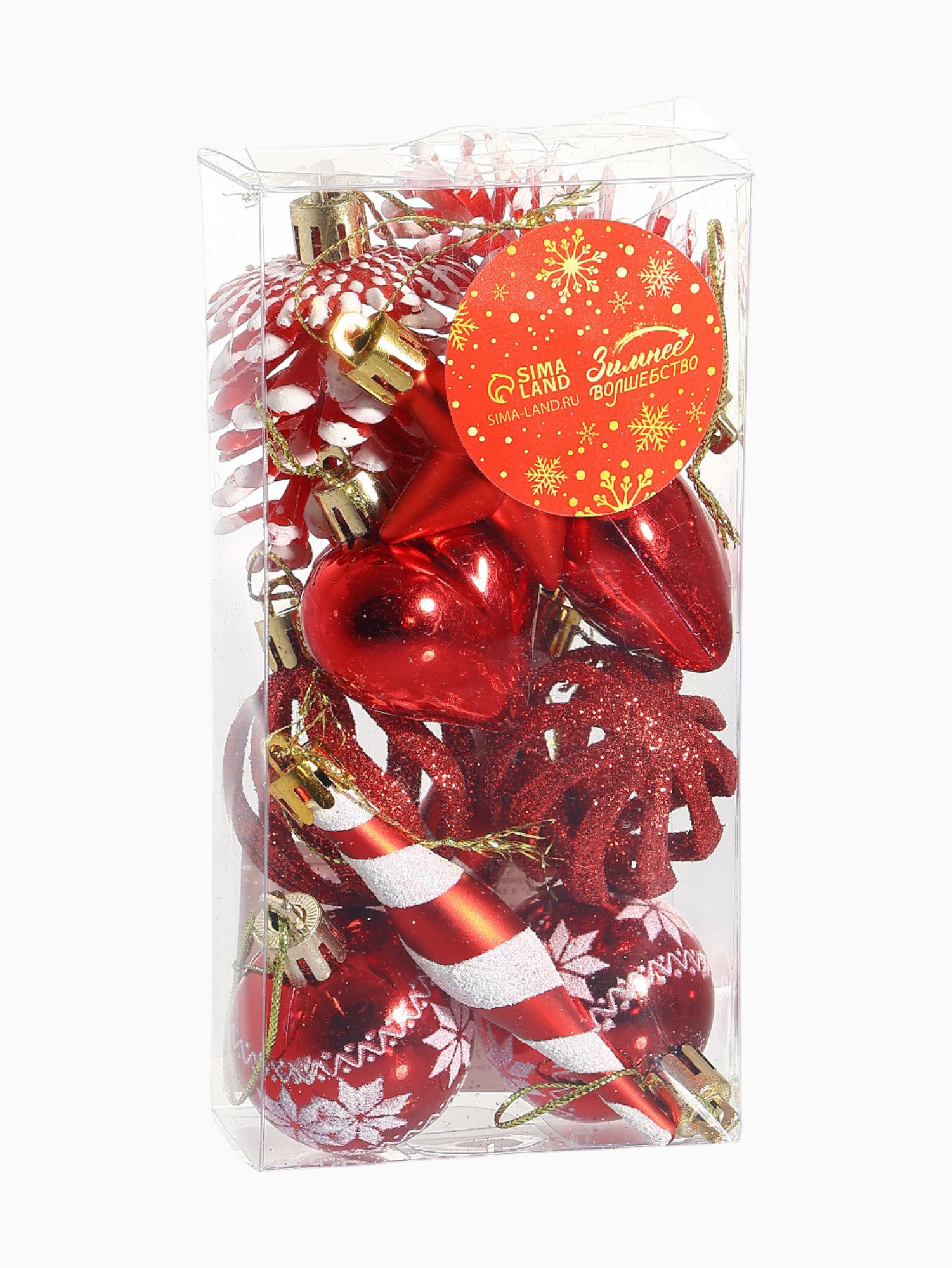 Ёлочные игрушки набор 12 шт. "Праздничный хоровод" 4 см, красный, 7x3.5x15 см., Зимнее волшебство, Китай