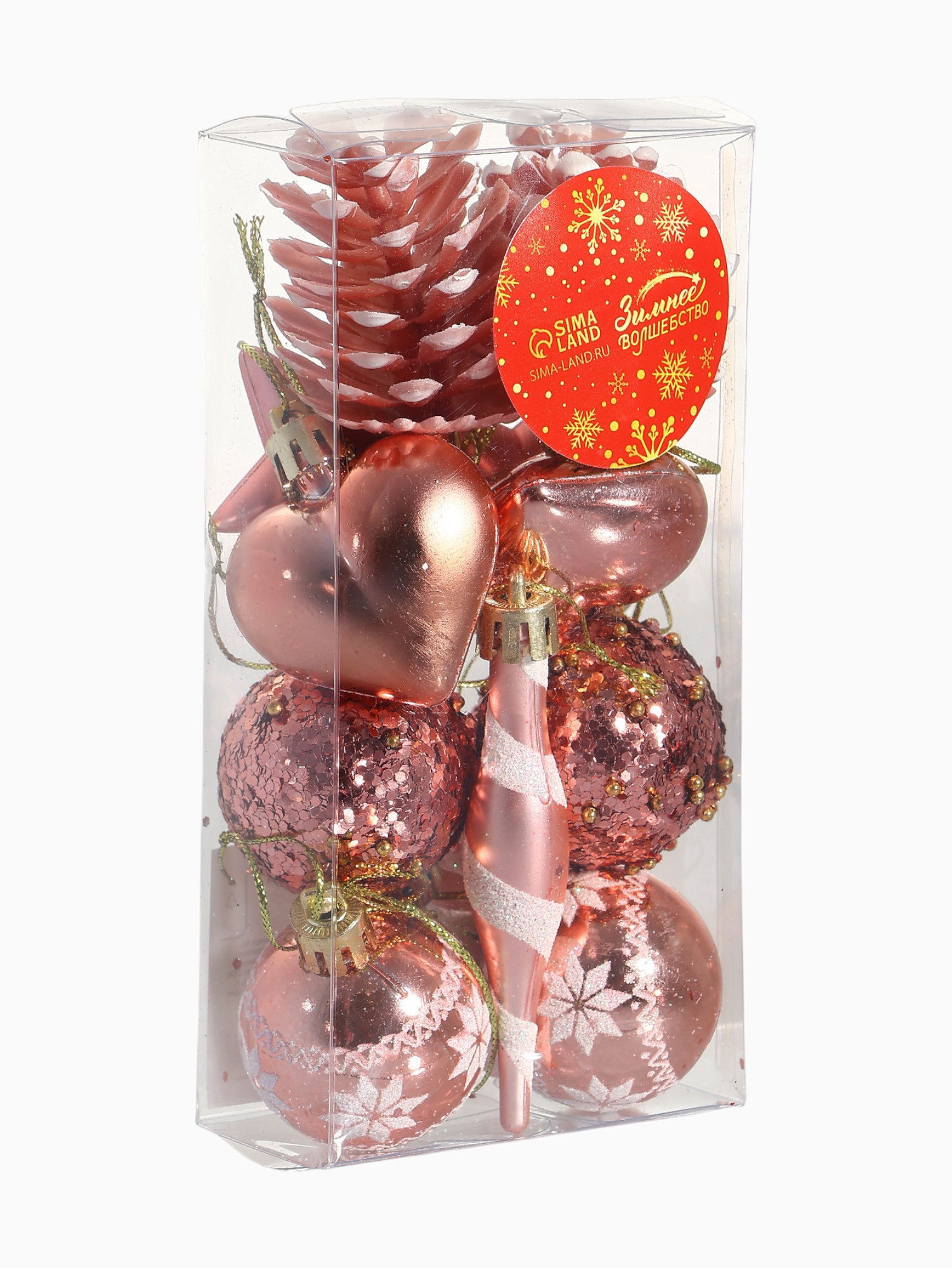 Ёлочные игрушки набор 12 шт. "Праздничный хоровод" 4 см, розовый, 7x3.5x15 см., Зимнее волшебство, Китай