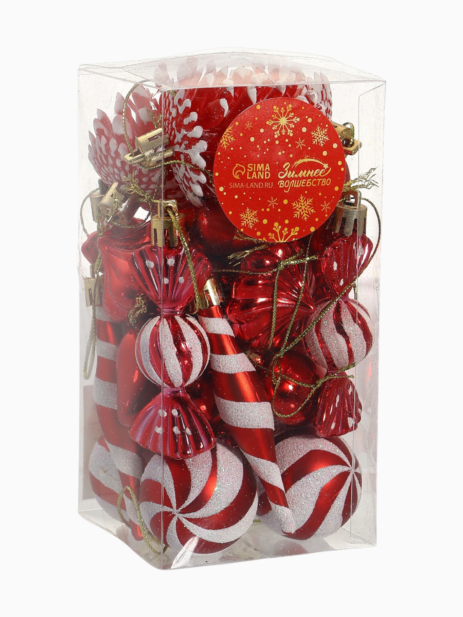 Ёлочные игрушки набор 26 шт. "Праздничный хоровод" 4 см, красный, 8x8x15.5 см., Зимнее волшебство, Китай