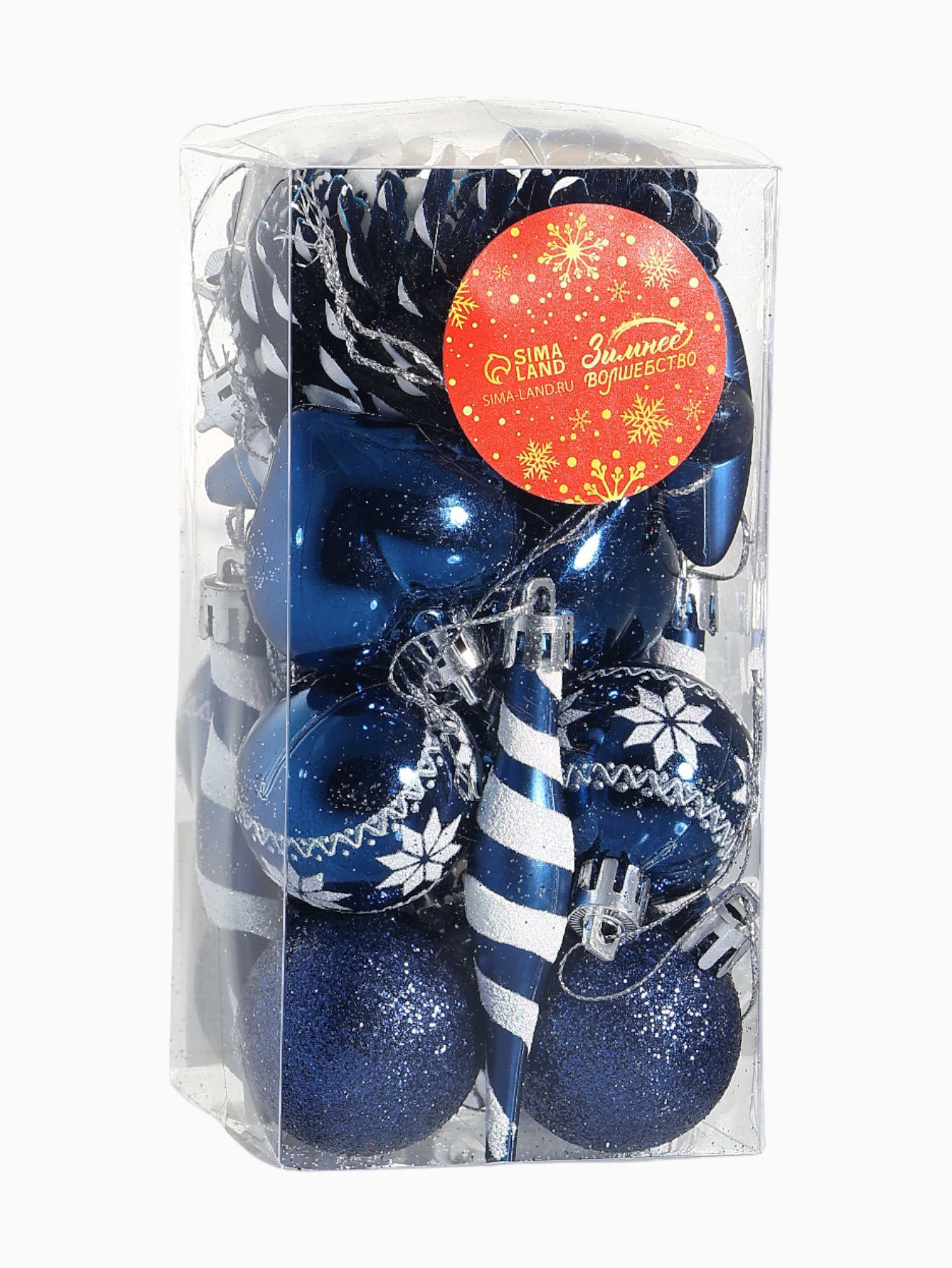 Ёлочные игрушки набор 23 шт. "Праздничный хоровод" 4 см, синий, 8x8x15.5 см., Зимнее волшебство, Китай