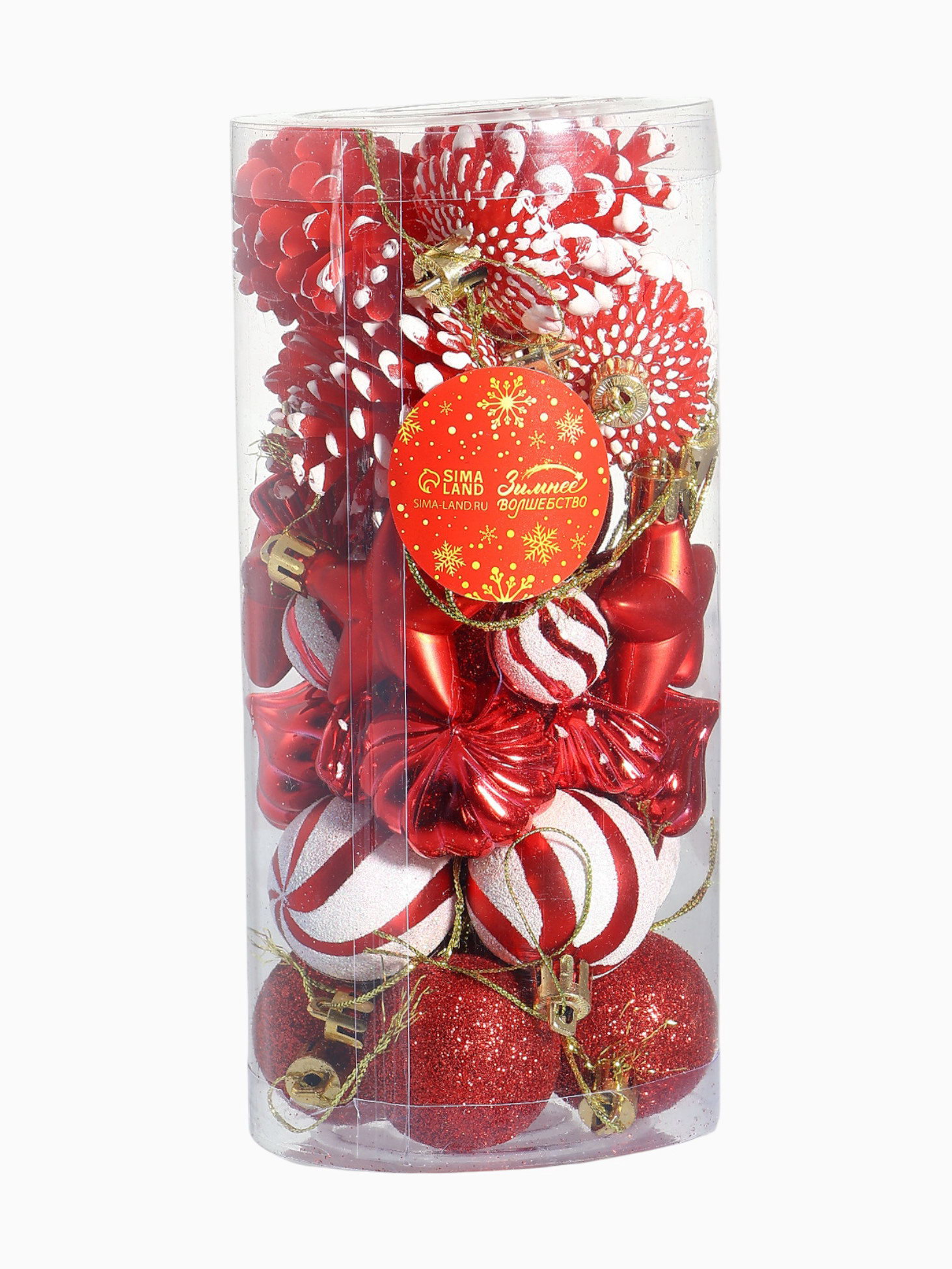 Ёлочные игрушки набор 33 шт. "Праздничный хоровод" 4 см, красный, 9.5x9.5x20 см., Зимнее волшебство, Китай