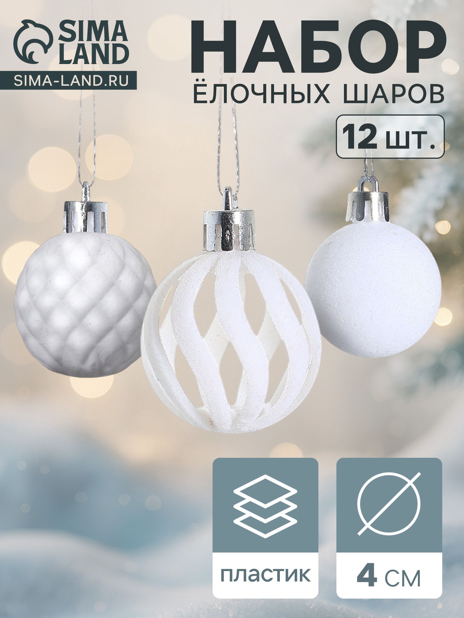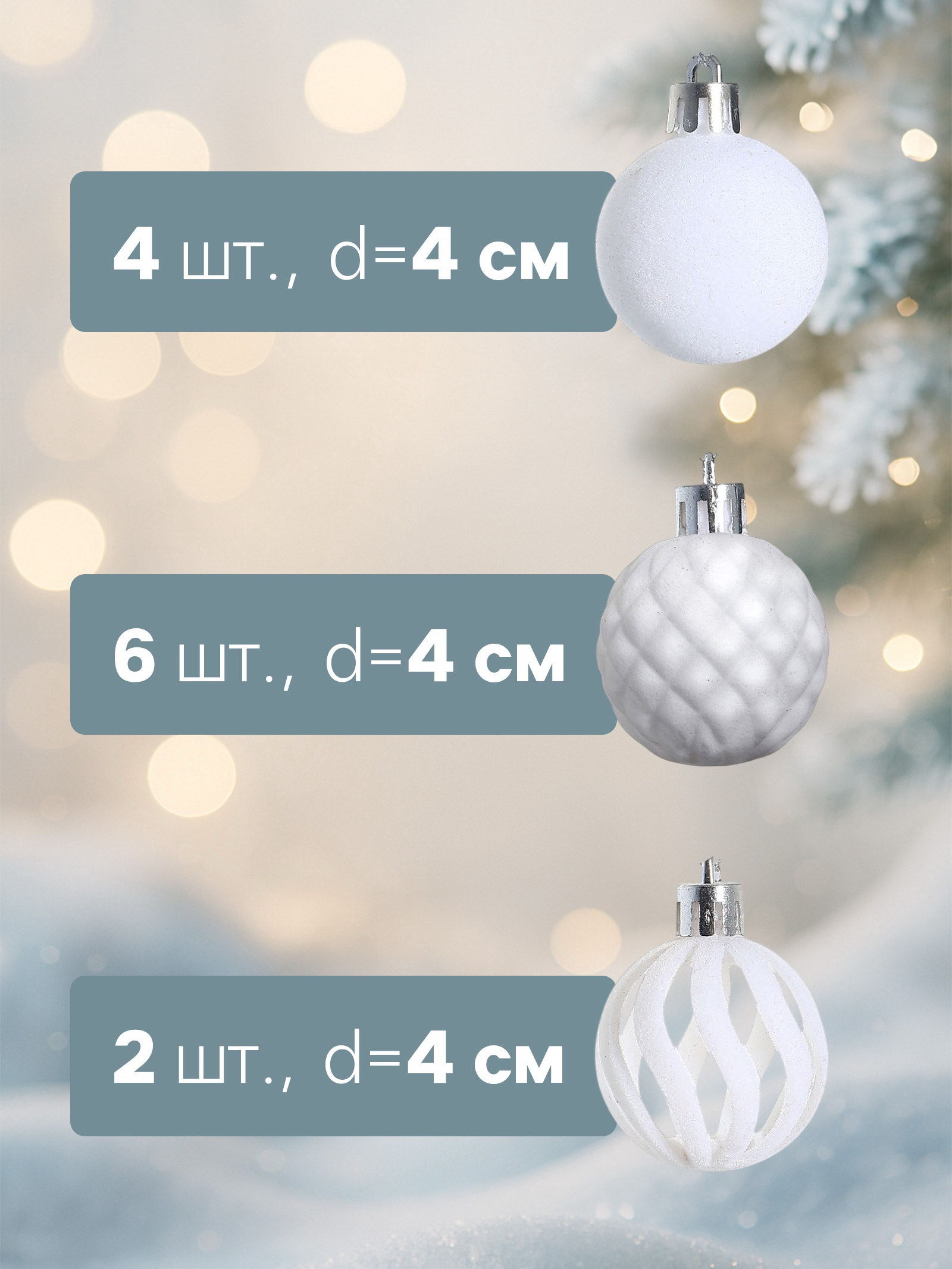 Ёлочные шары набор 12 шт., d=4 см, "Бархат. Время карнавала" белый, 4x4x4 см., Зимнее волшебство, Китай