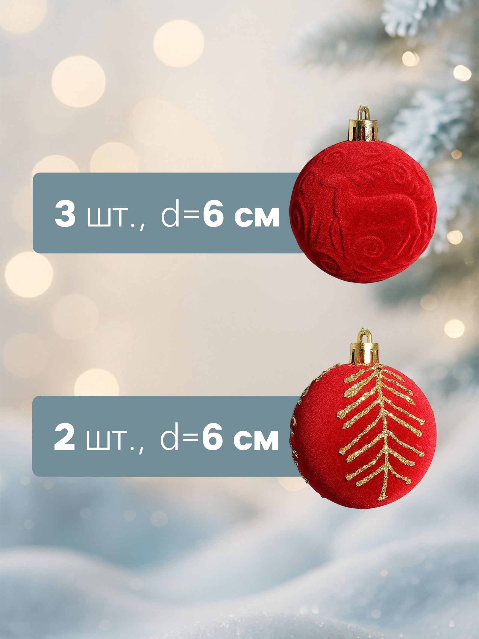Ёлочные шары набор 9 шт., d=6 см, "Бархат. Карнавал" красный, 6x6x6 см., Зимнее волшебство, Китай