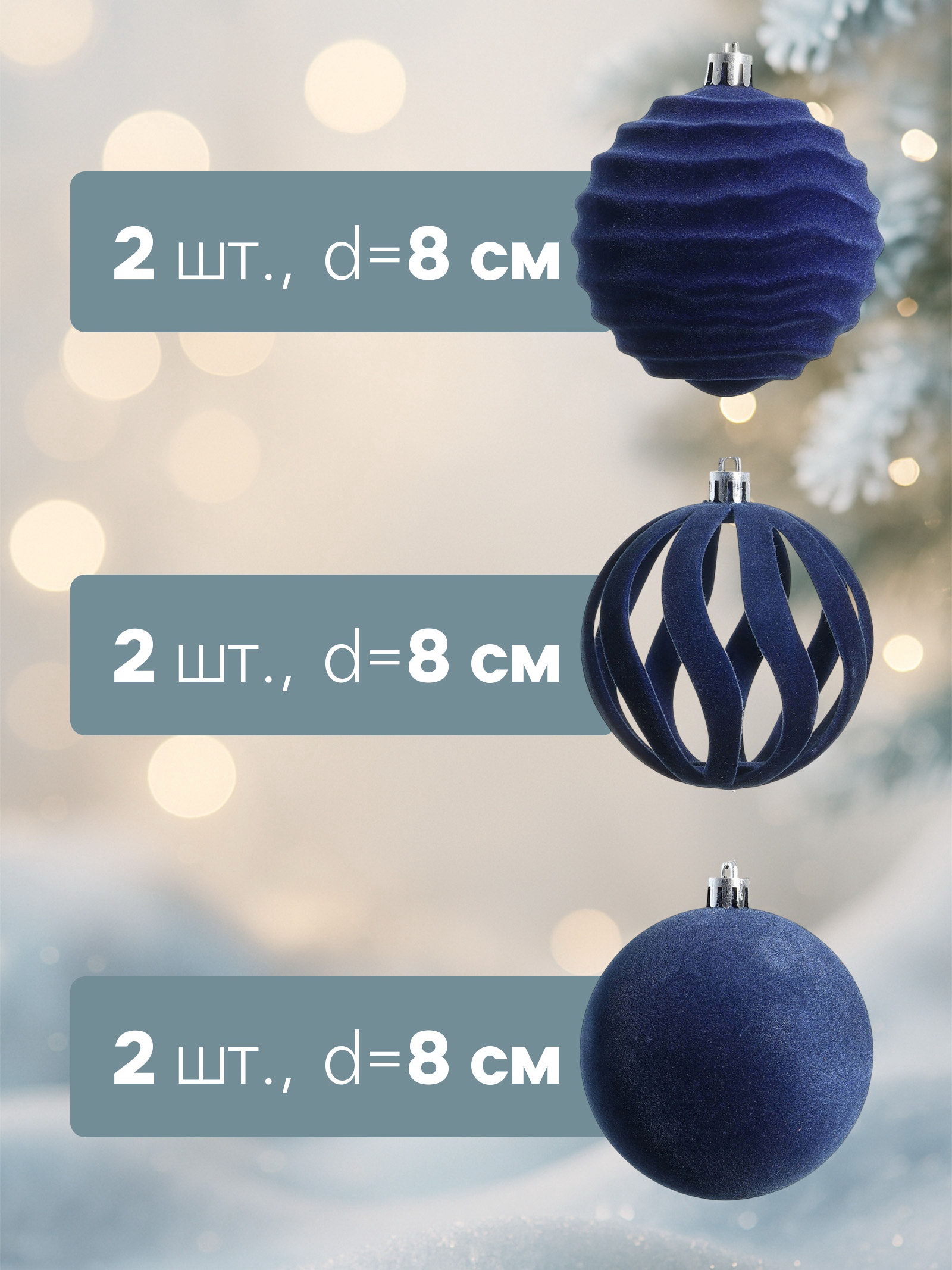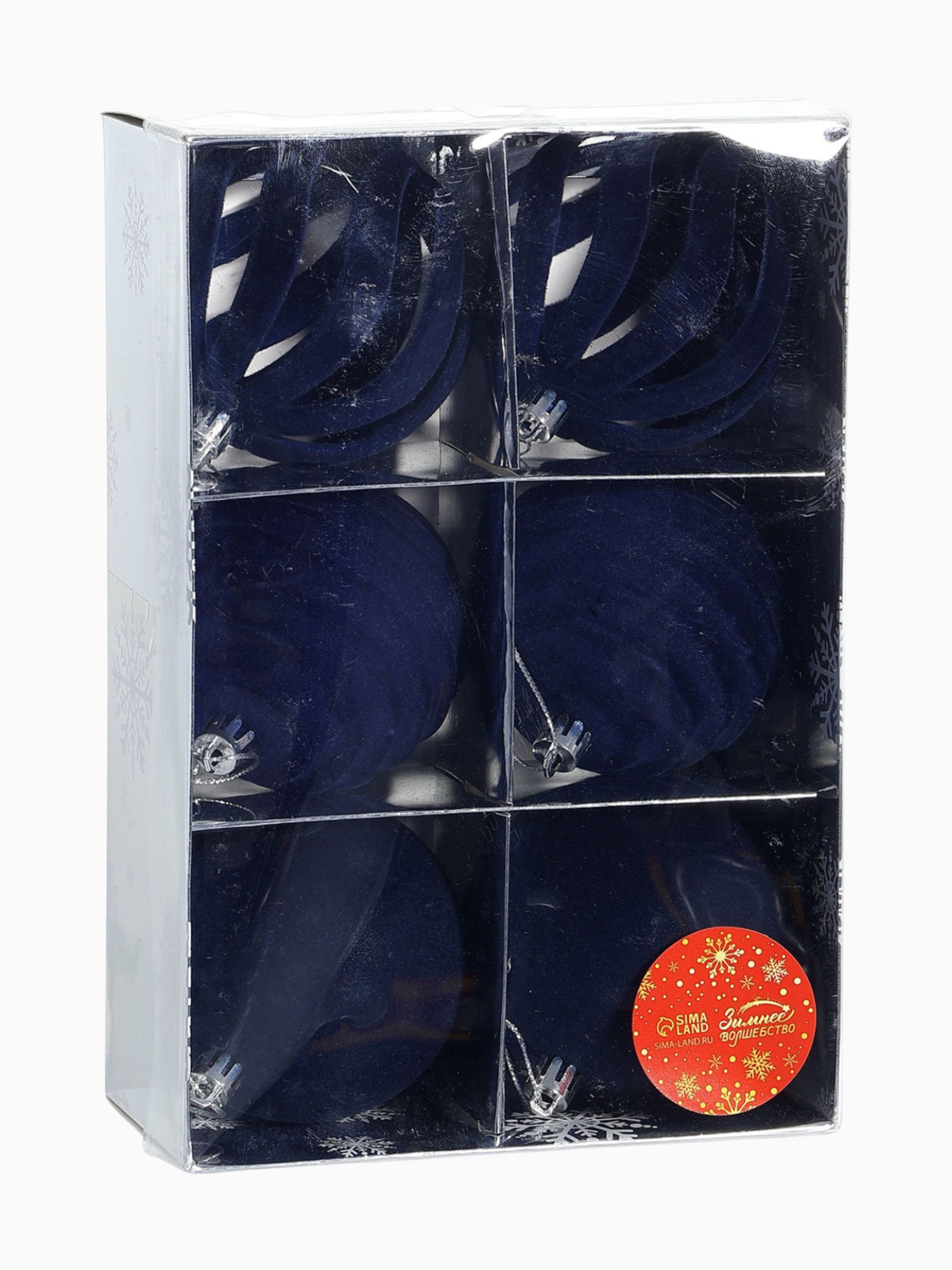 Ёлочные шары набор 6 шт., d=8 см, "Бархат. Грация" синий, 8x8x8 см., Зимнее волшебство, Китай