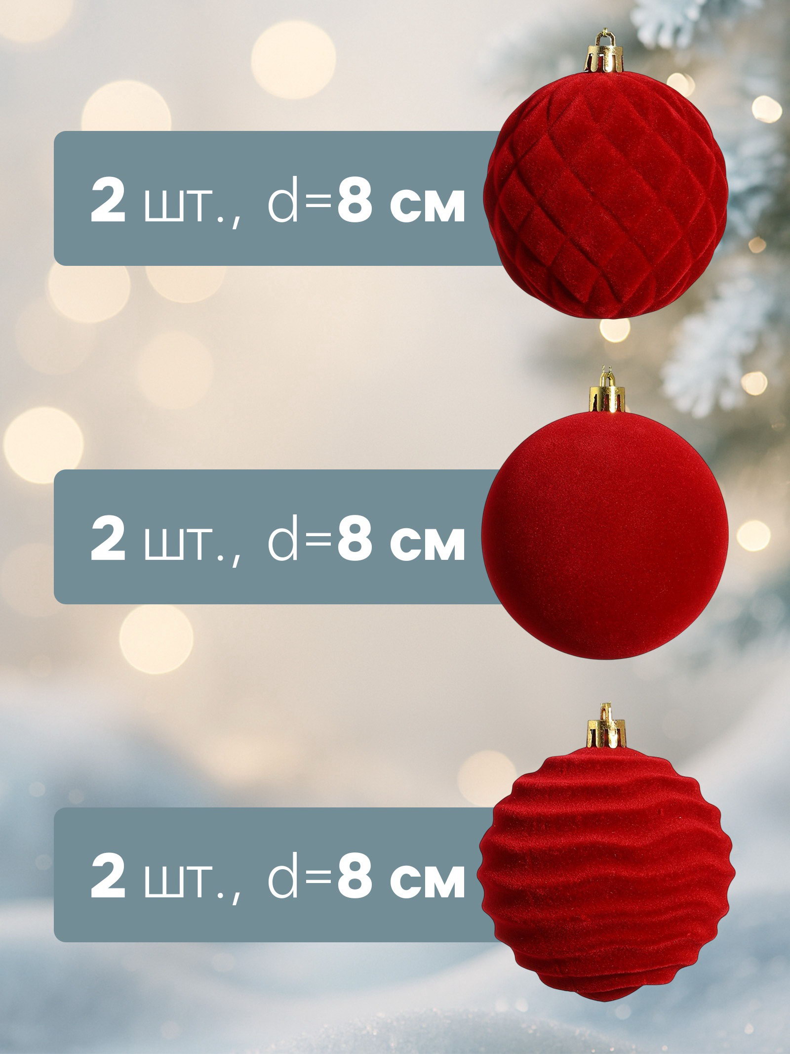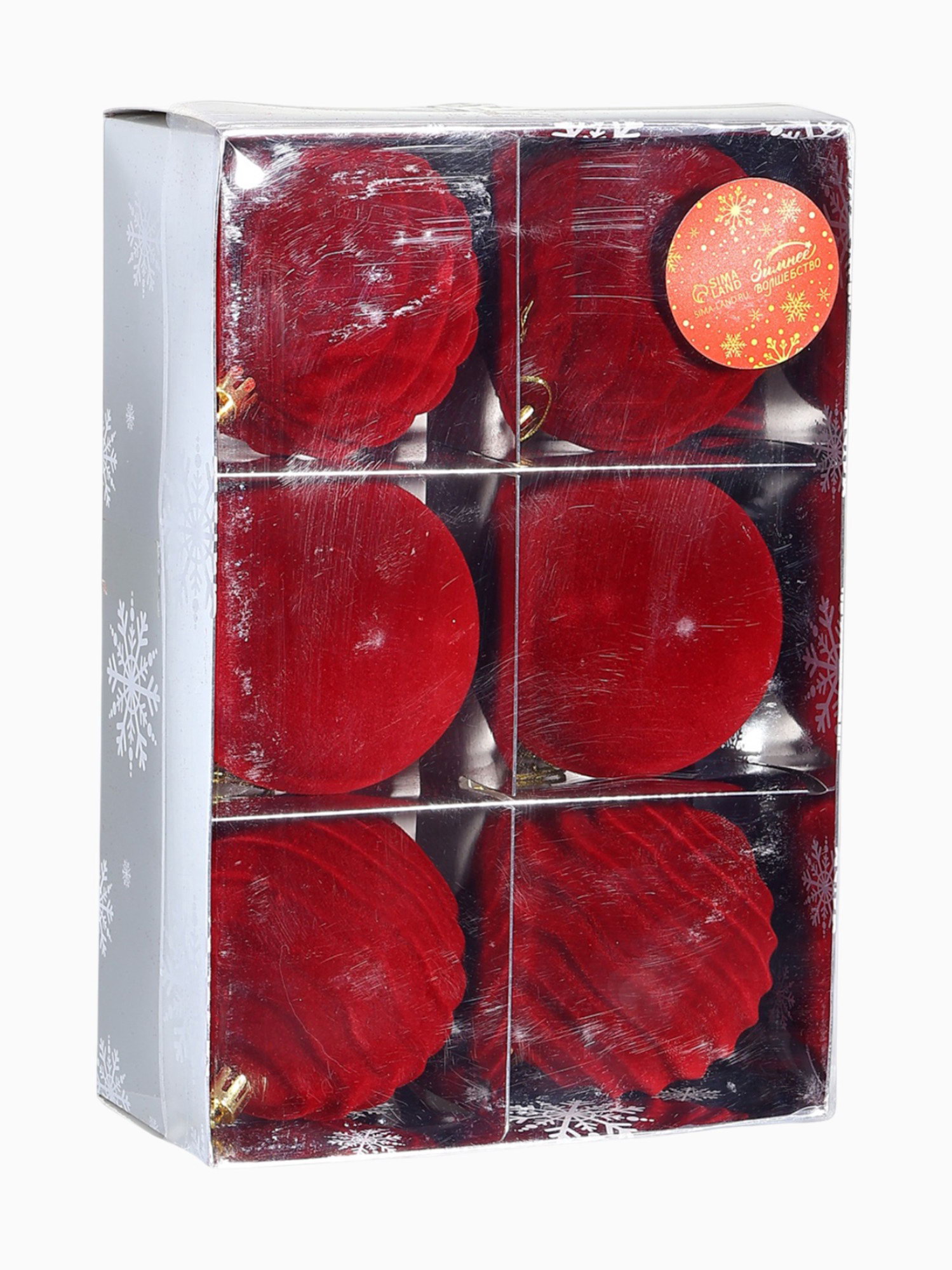 Ёлочные шары набор 6 шт., d=8 см, "Бархат. Стиль" красный, 8x8x8 см., Зимнее волшебство, Китай