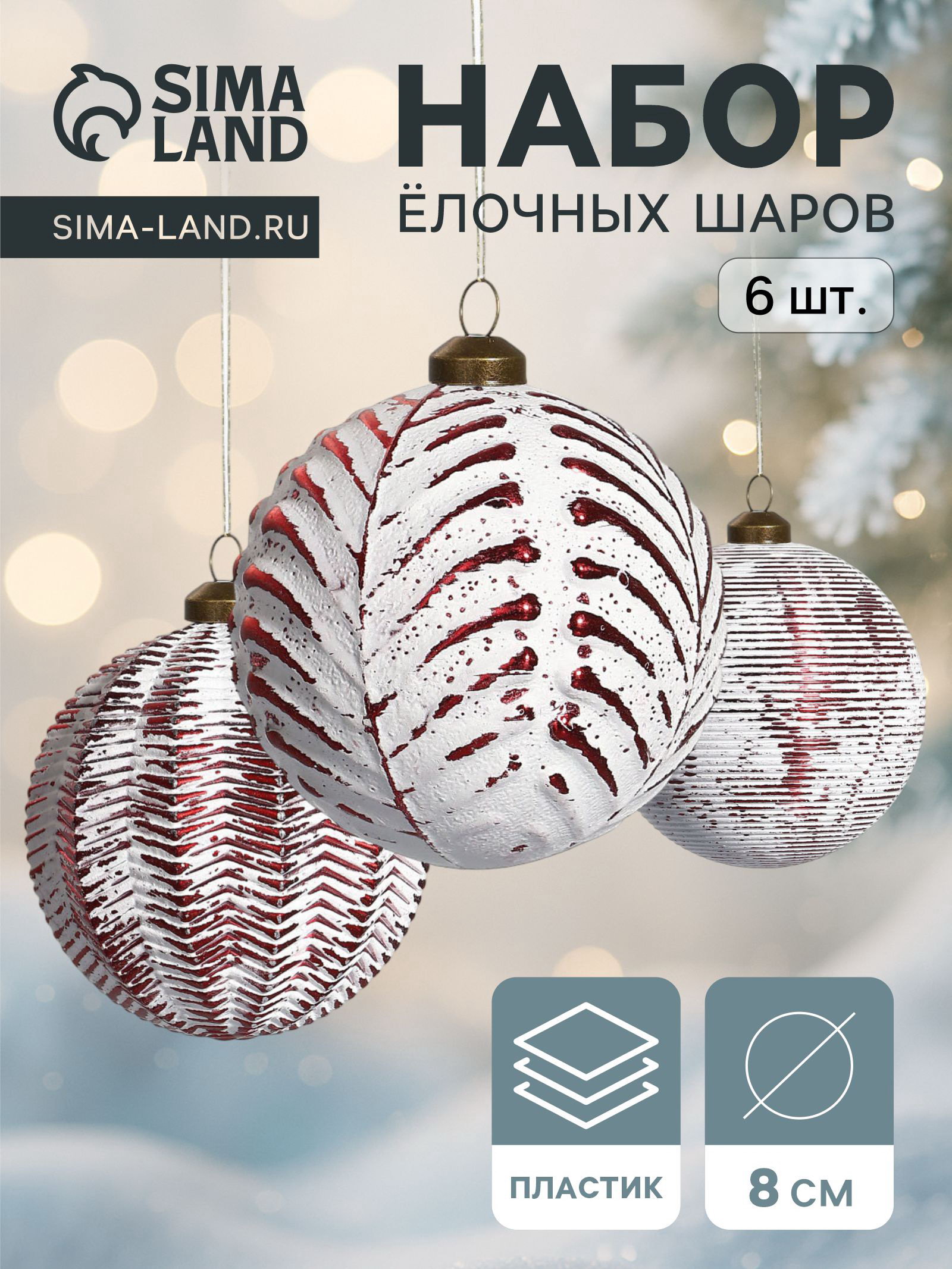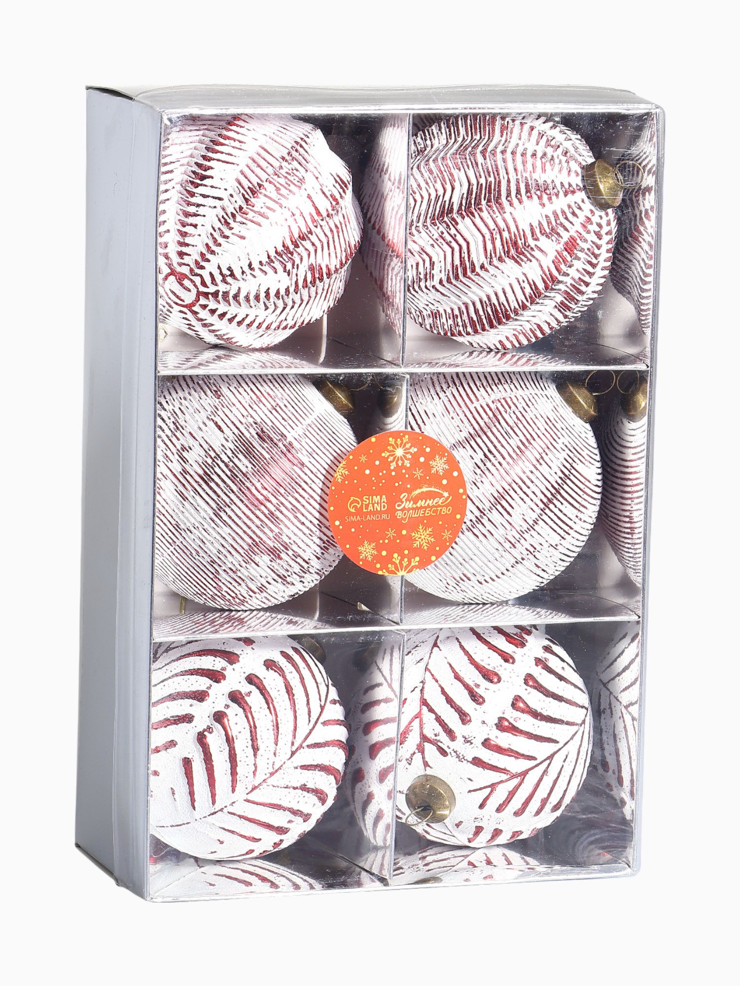 Набор ёлочных шаров "Вестон", 6 шт., d=8 см, веточки, бело-красный, 8x8 см., Зимнее волшебство, Китай