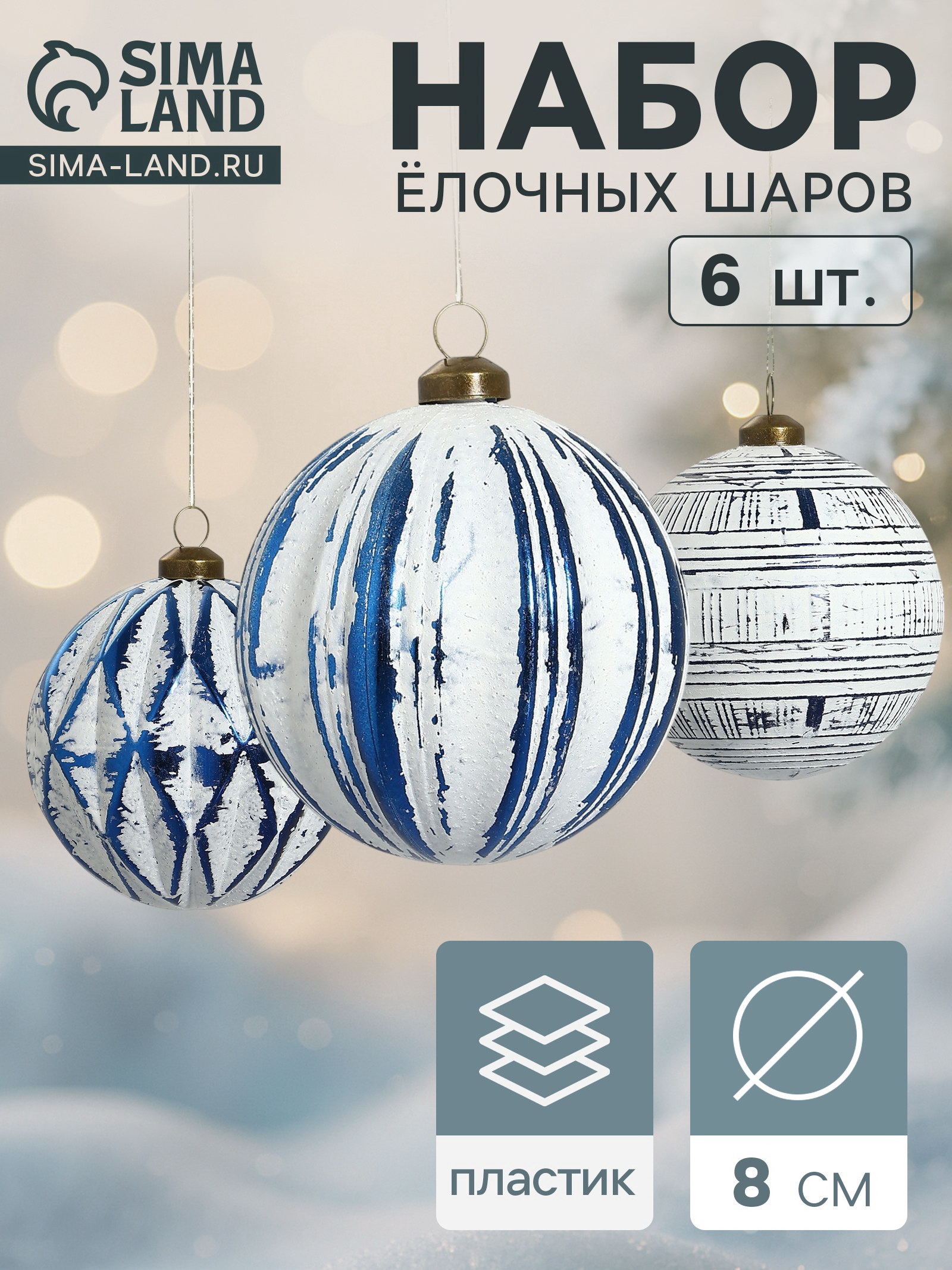 Набор ёлочных шаров "Вестон", d=8 см, 6 шт., геометрия, бело-синий, 8x8 см., Китай