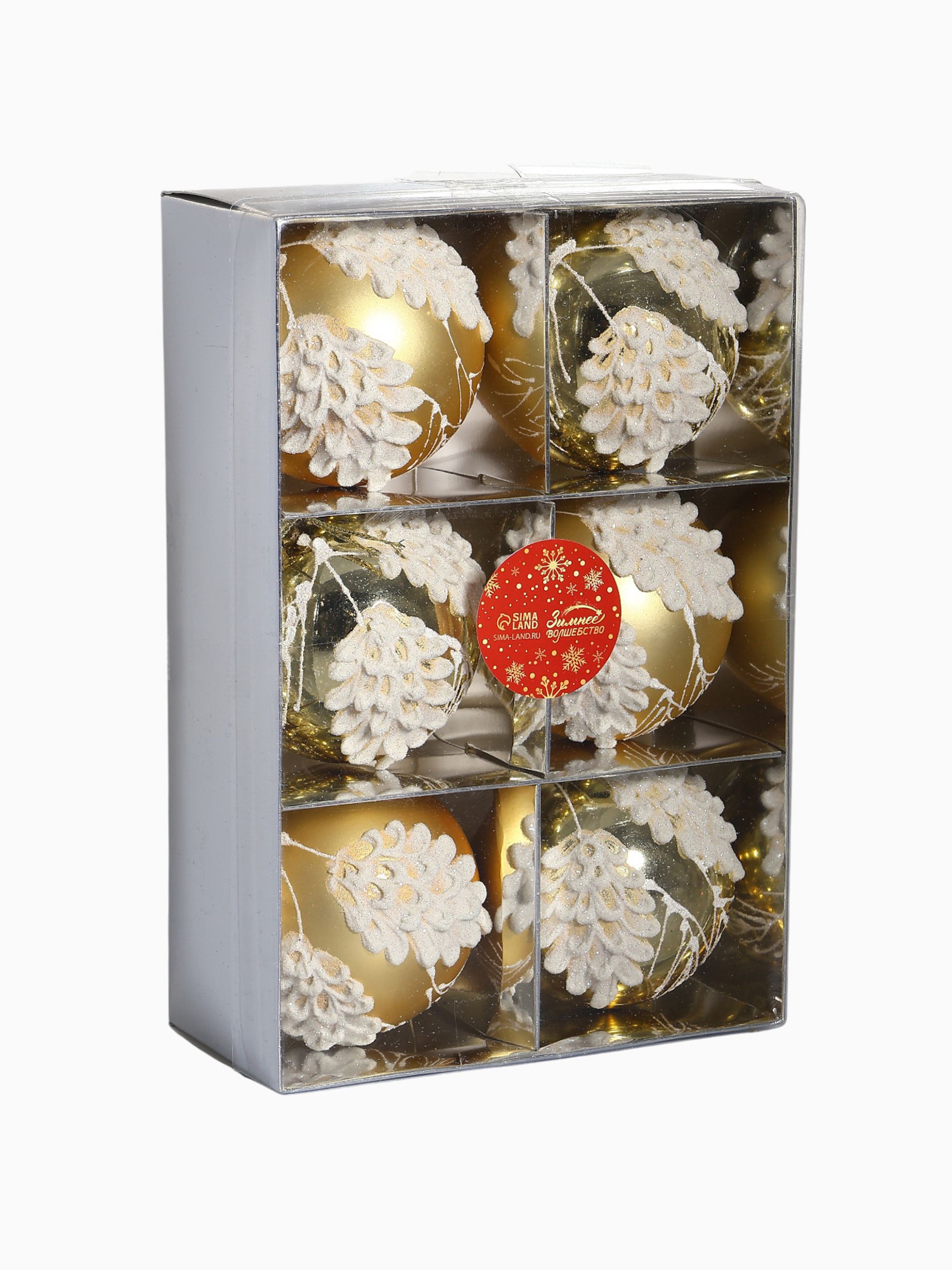 Набор новогодних шаров "Ловель", d=8 см, 6 шт., пластик, золото, 8x8 см., Китай