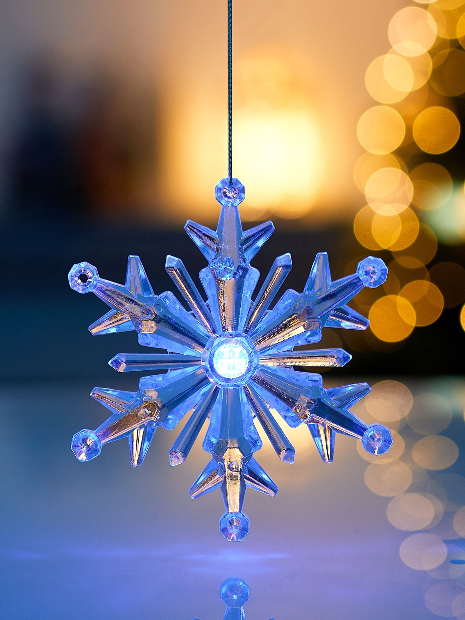 Подвеска светодиодная "Ледяная снежинка" 11 см, 1 LED, от батареек LR41x3, свечение синее/красное, 11x2x11 см., Luazon Lighting, Китай