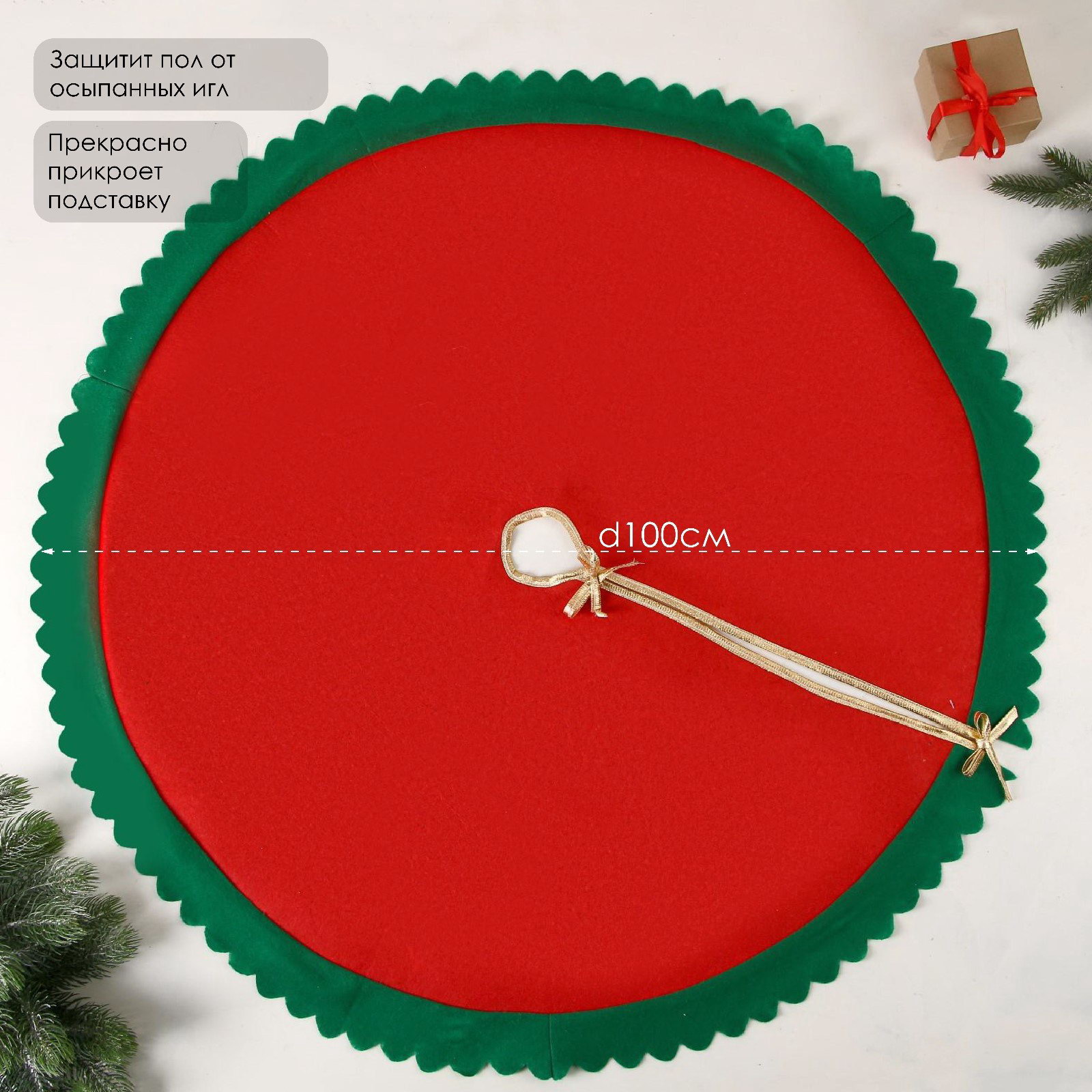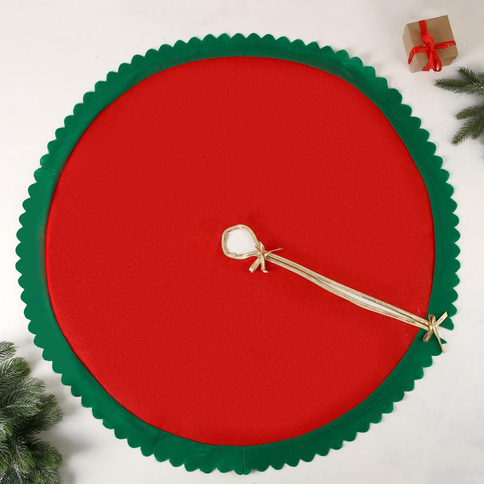Коврик под ёлку "Зелёные рюши" 100 см, красно-зелёный, 100х100х95 см., Зимнее волшебство, Китай