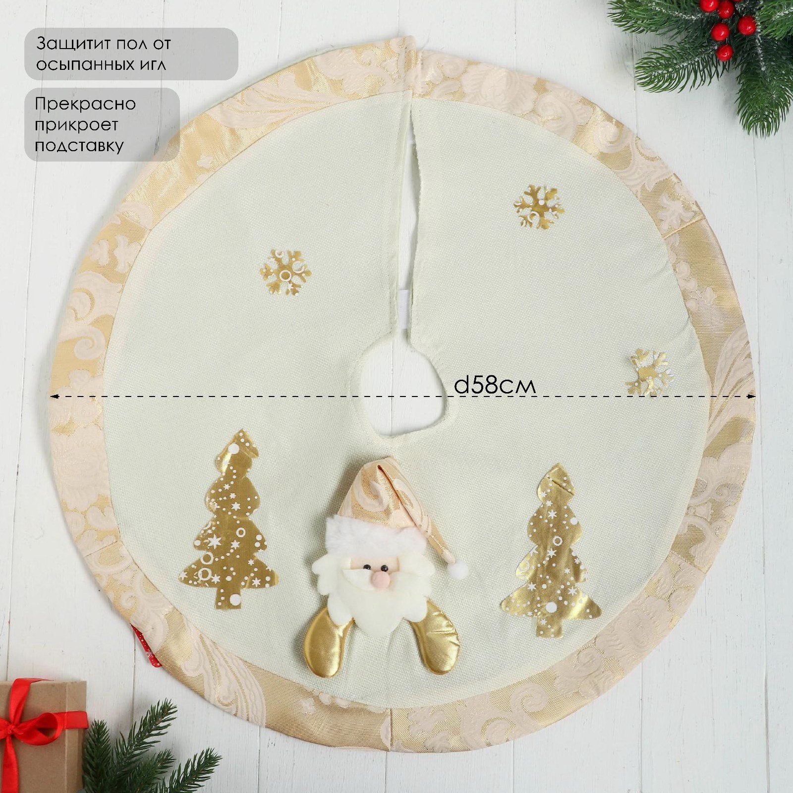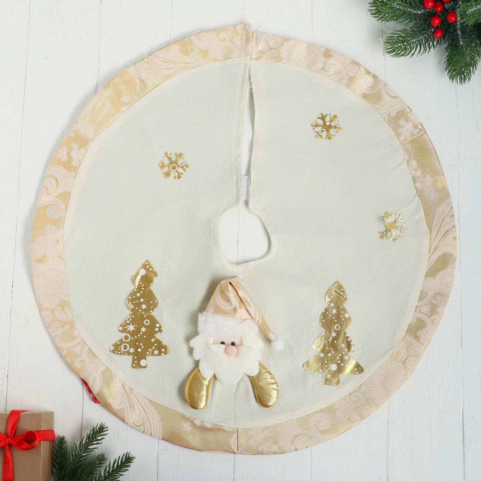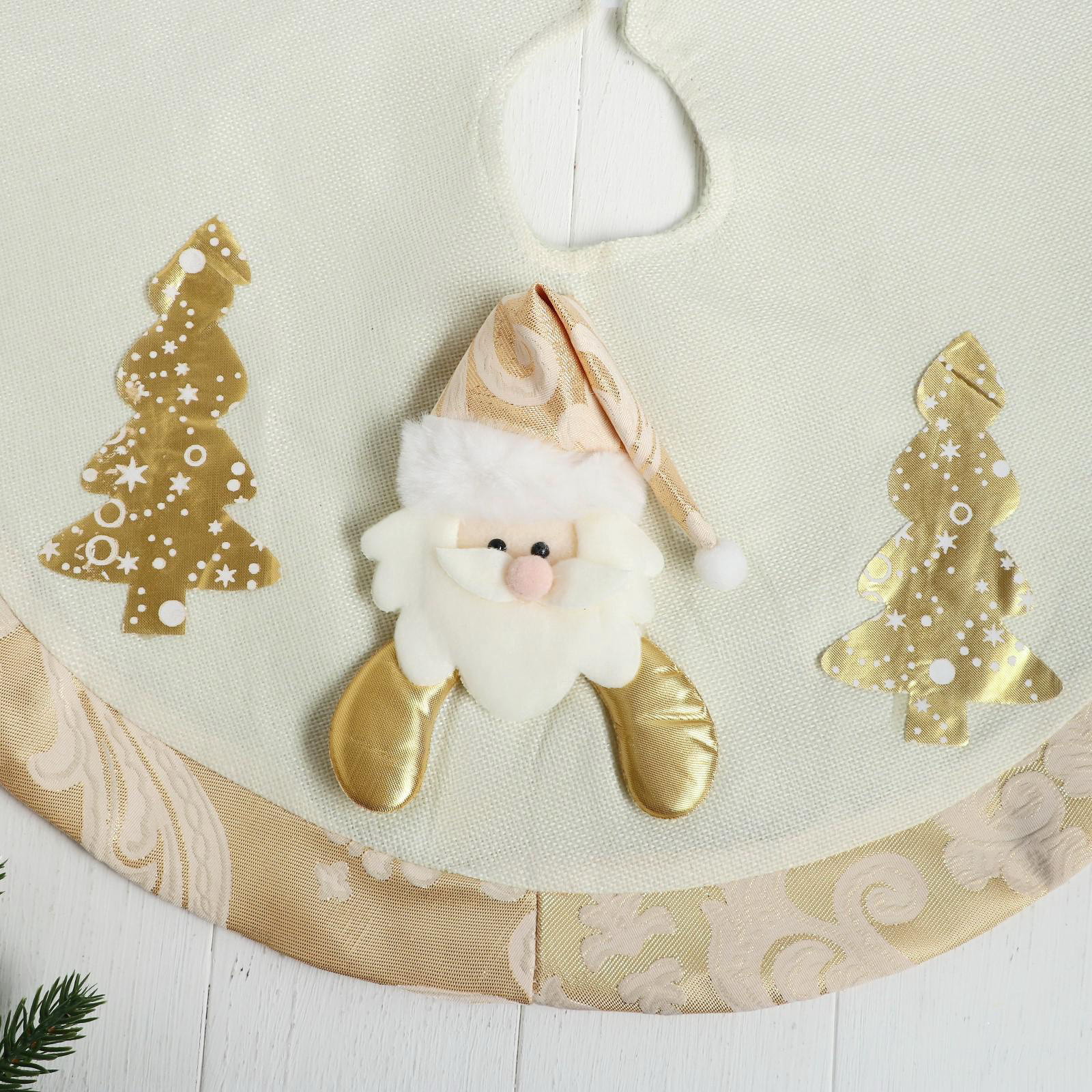 Коврик под ёлку "Дед Мороз и ёлочки" d=58 см, бело-золотой, 58х58х58 см., Зимнее волшебство, Китай