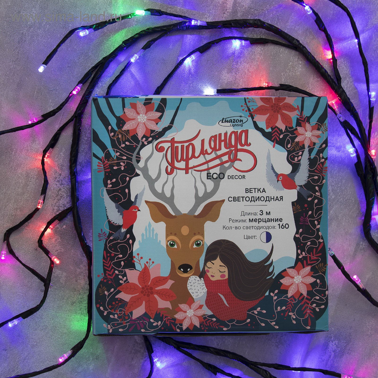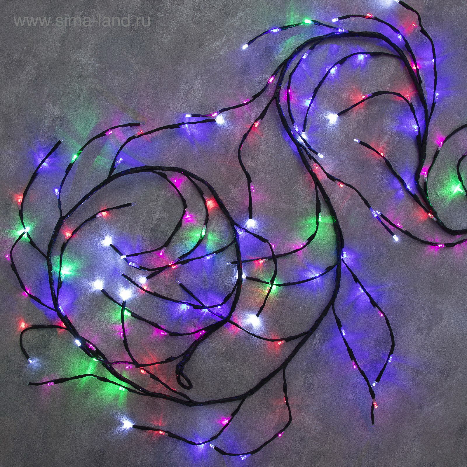 Светодиодная ветка 3 м, 160 LED, тёмная нить, 220 В, свечение мульти, мерцание белым, Luazon Lighting, Китай