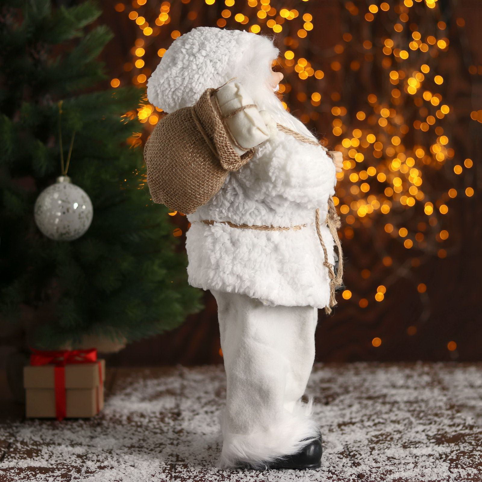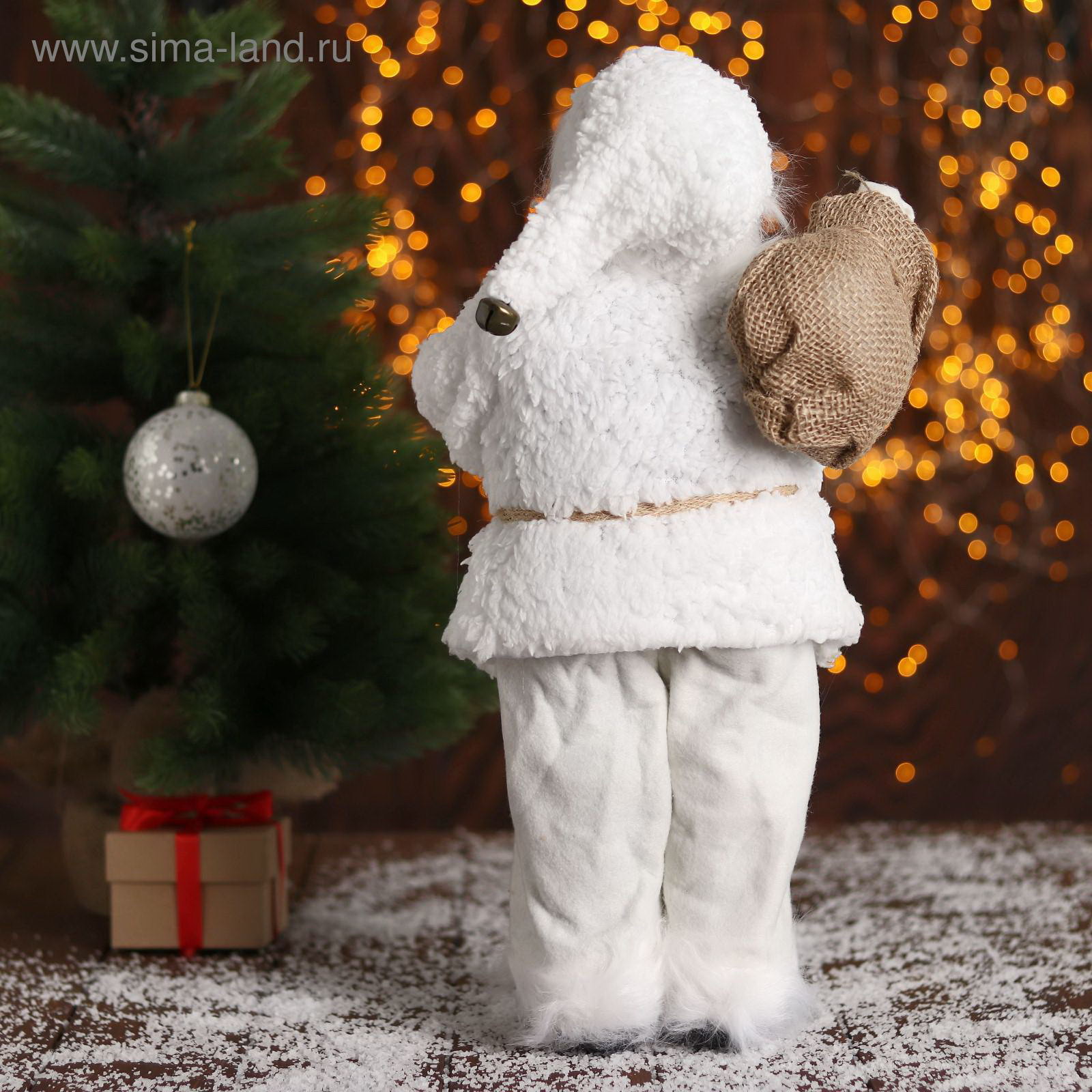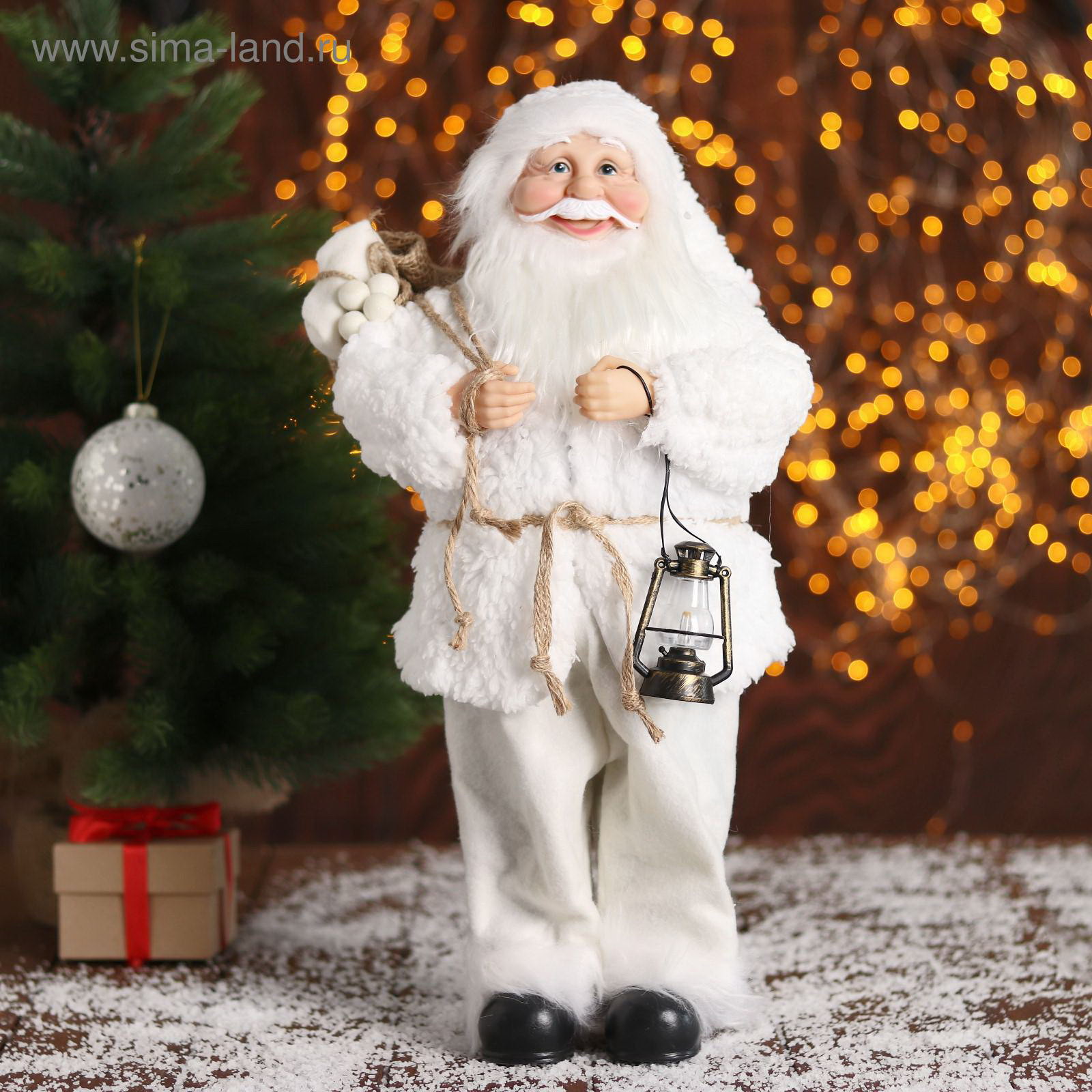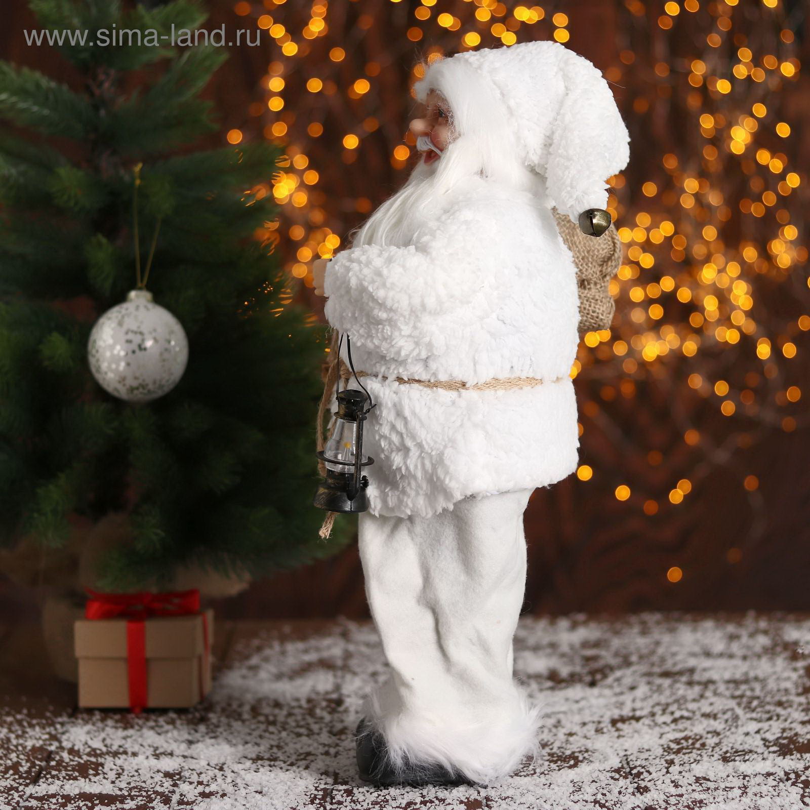 Дед Мороз "В белой шубке, с фонариком" 43 см, 43 см., Зимнее волшебство, Китай
