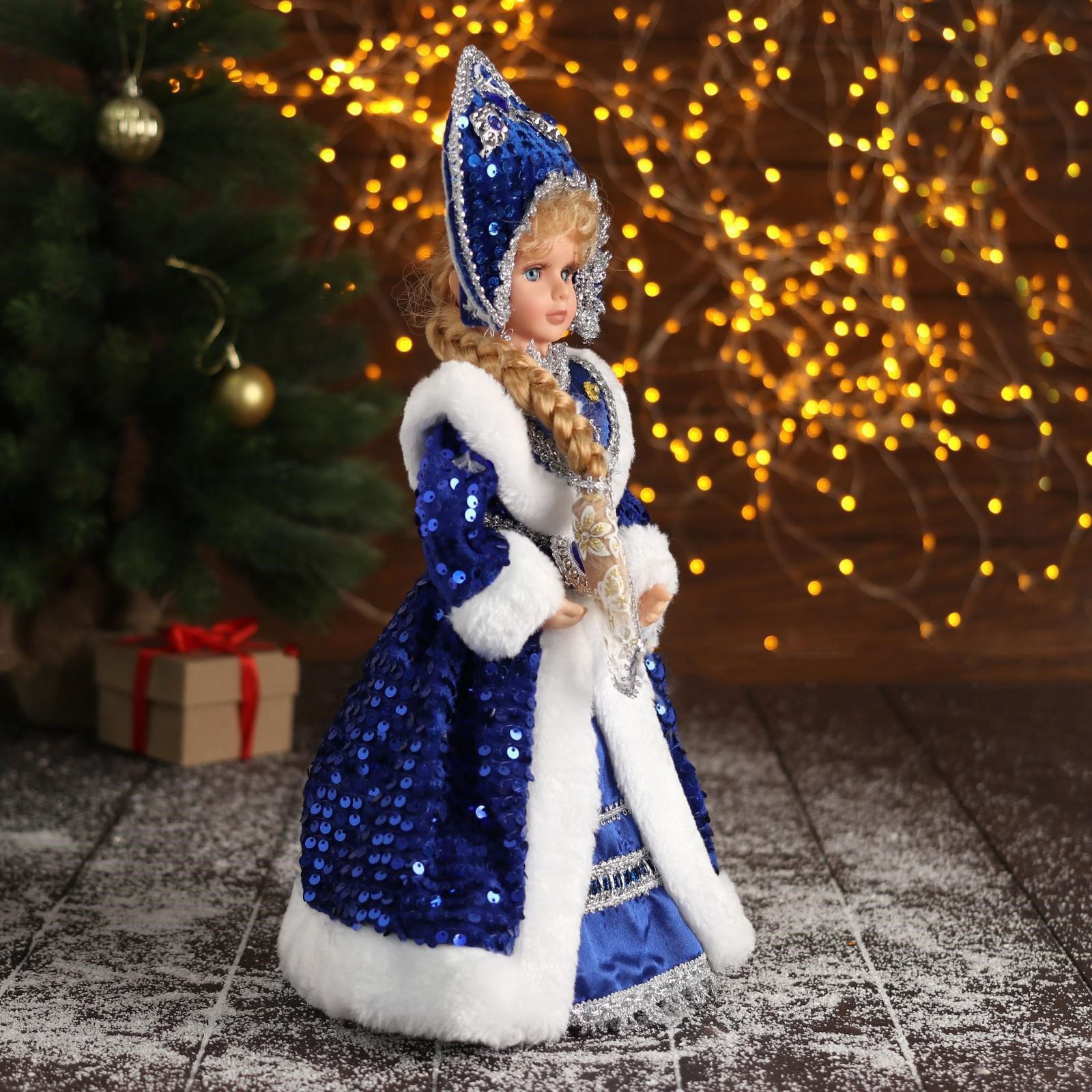 Снегурочка под ёлку "Зимнее волшебство. В синей шубке и кокошнике", 35 см, 17x35 см., Зимнее волшебство, Китай