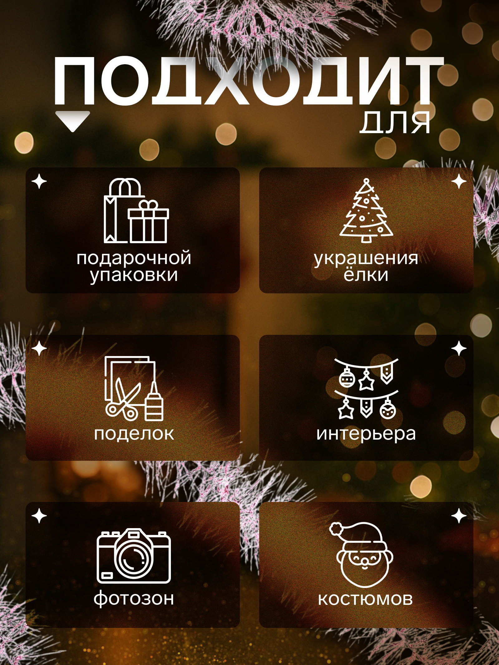 Создаём праздничное настроение Этот элемент декора выступает не просто как украшение, а как часть общей концепции оформления, наполняя пространство живостью и светом. Мишура отражает огни гирлянд и свечей, создавая игру бликов, которая оживляет интерьер и делает его более уютным. Её универсальность позволяет сочетать украшение с другими элементами новогоднего декора, формируя цельный и гармоничный образ. Использование двойной мишуры с крупным диаметром способствует быстрому и эффектному преобразованию пространства, добавляя праздничные акценты и подчёркивая торжественность момента. Она подходит для украшения не только ёлок, но и фотозон, окон, лестничных перил и праздничных столов, создавая завершённый и выразительный образ. Благодаря сочетанию советских традиций и современных тенденций, мишура становится мостом между прошлым и настоящим, делая праздник более живым и запоминающимся. Таким образом, двойная разноцветная мишура с большим диаметром это практичное и эффектное решение для создания новогоднего интерьера, которое помогает наполнить пространство светом, цветом и теплом. Она станет важным элементом декора, подчёркивая индивидуальность оформления и делая каждый момент праздника особенным и атмосферным. | ||
