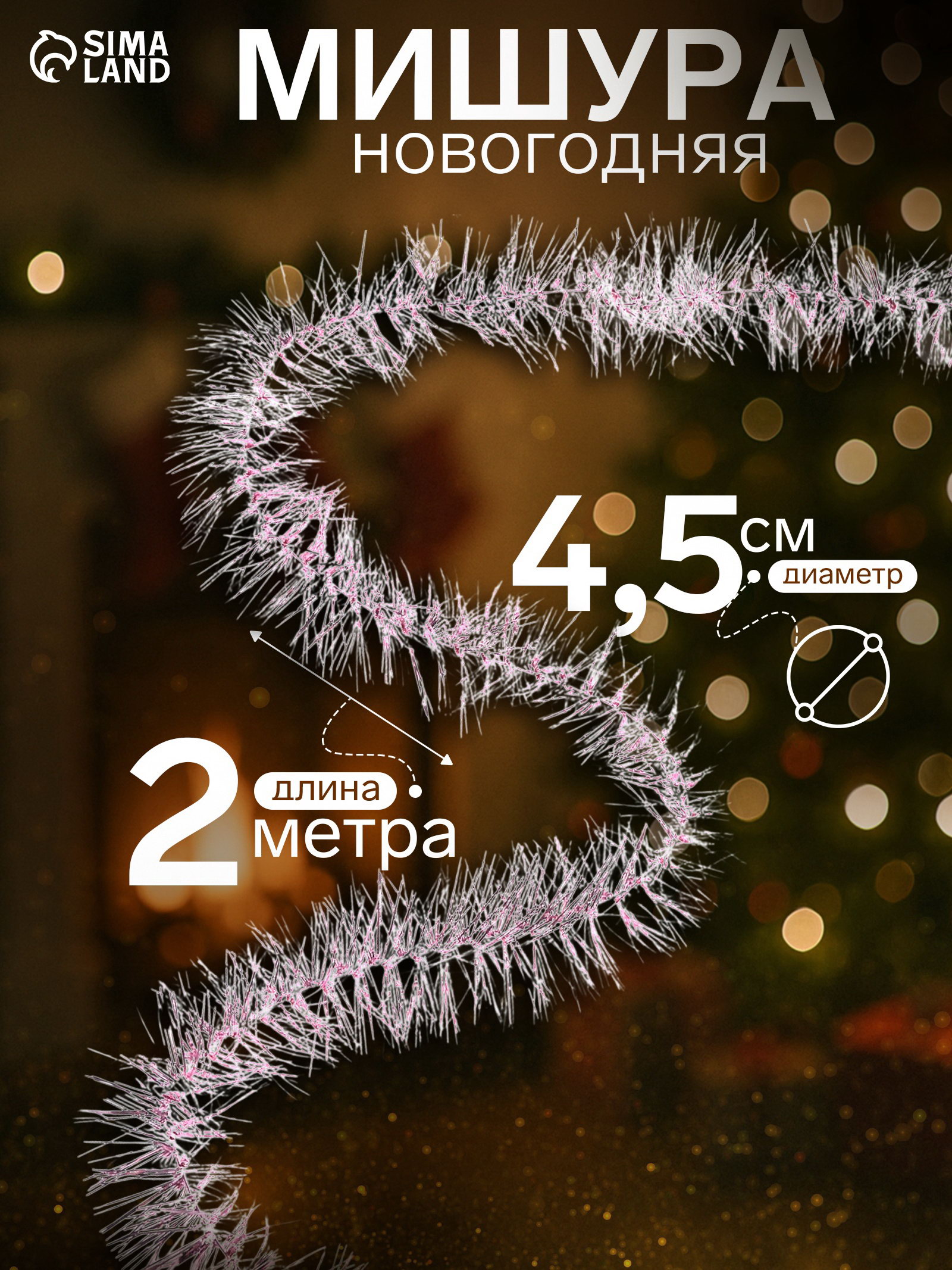 Мишура новогодняя "Ветер" двойная, d=4.5 см, L-200 см, МИКС, 4.5х4.5х190 см., Россия