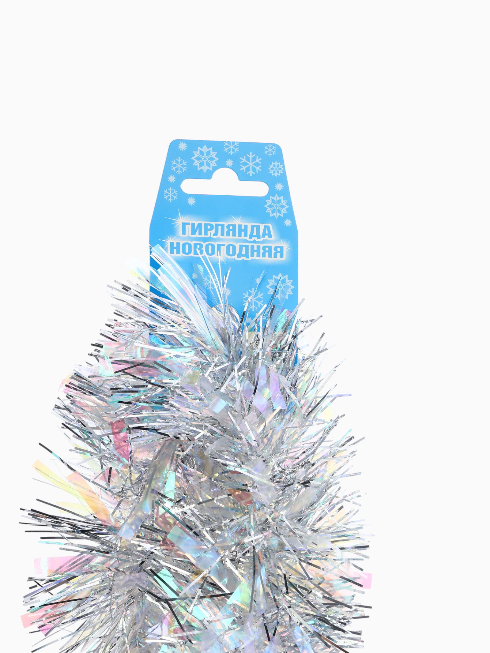 Мишура новогодняя "Радужно-серебристая" d=10 см, L-200 см, 10 см., Россия