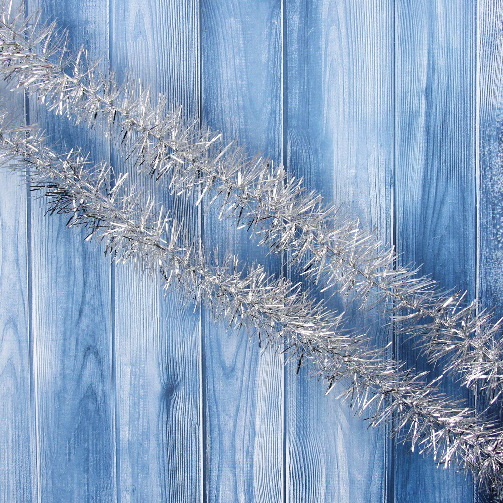 Мишура новогодняя № 18 "Ежик", d=35 мм+35 мм, 200 см серебро, 3.5 см., Россия