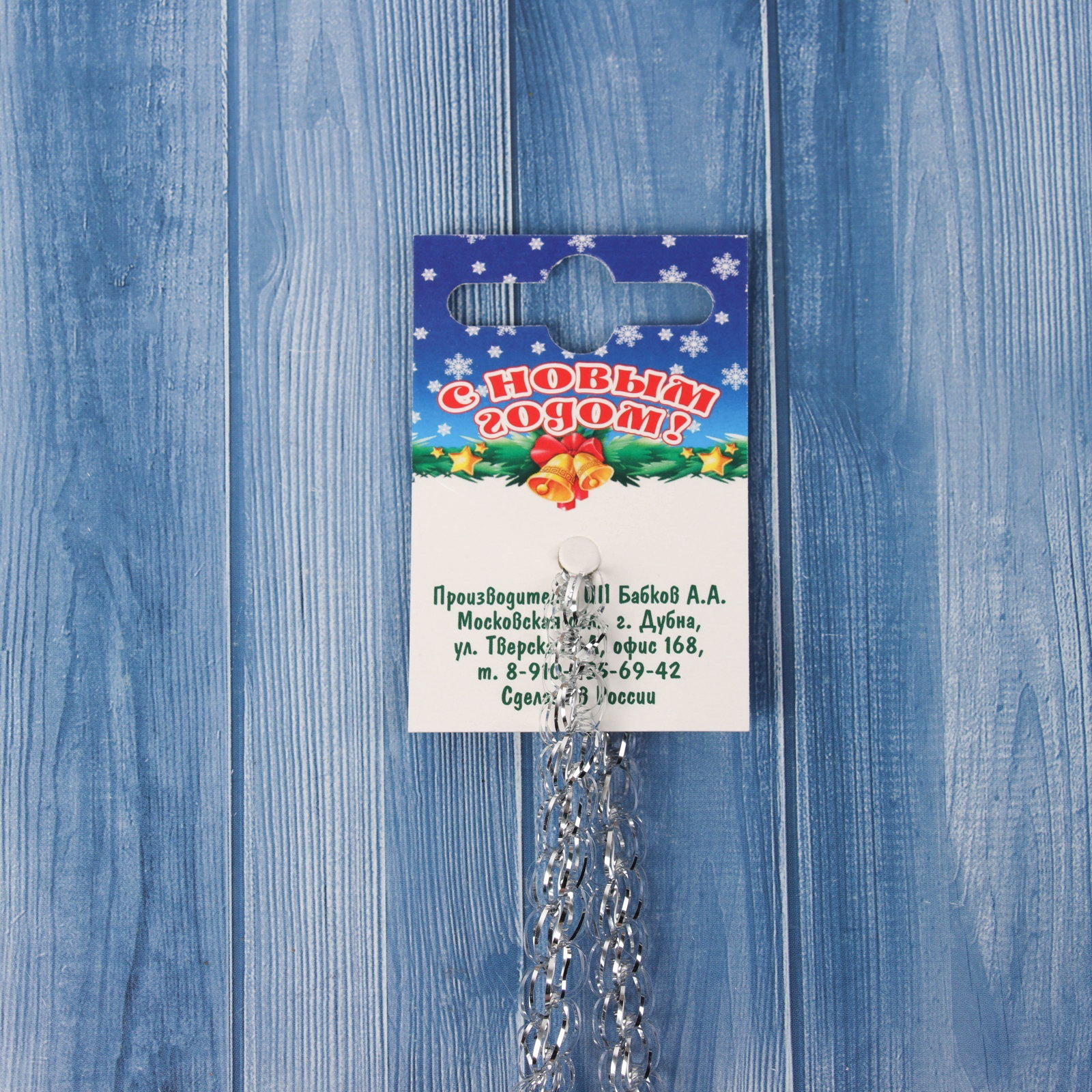 Мишура новогодняя "Бусинка" d=1.5 см, L-200 см, серебро, 1.5 см., Россия