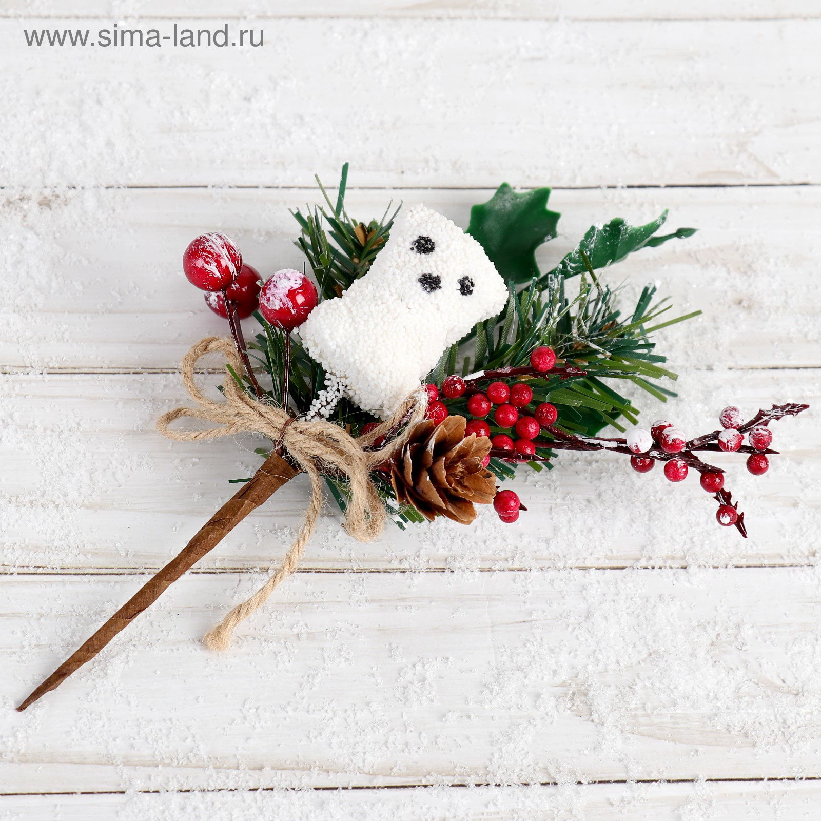 Декор "Зимнее очарование" мишка, ягоды и шишка 21 см, 21 см., Зимнее волшебство, Китай