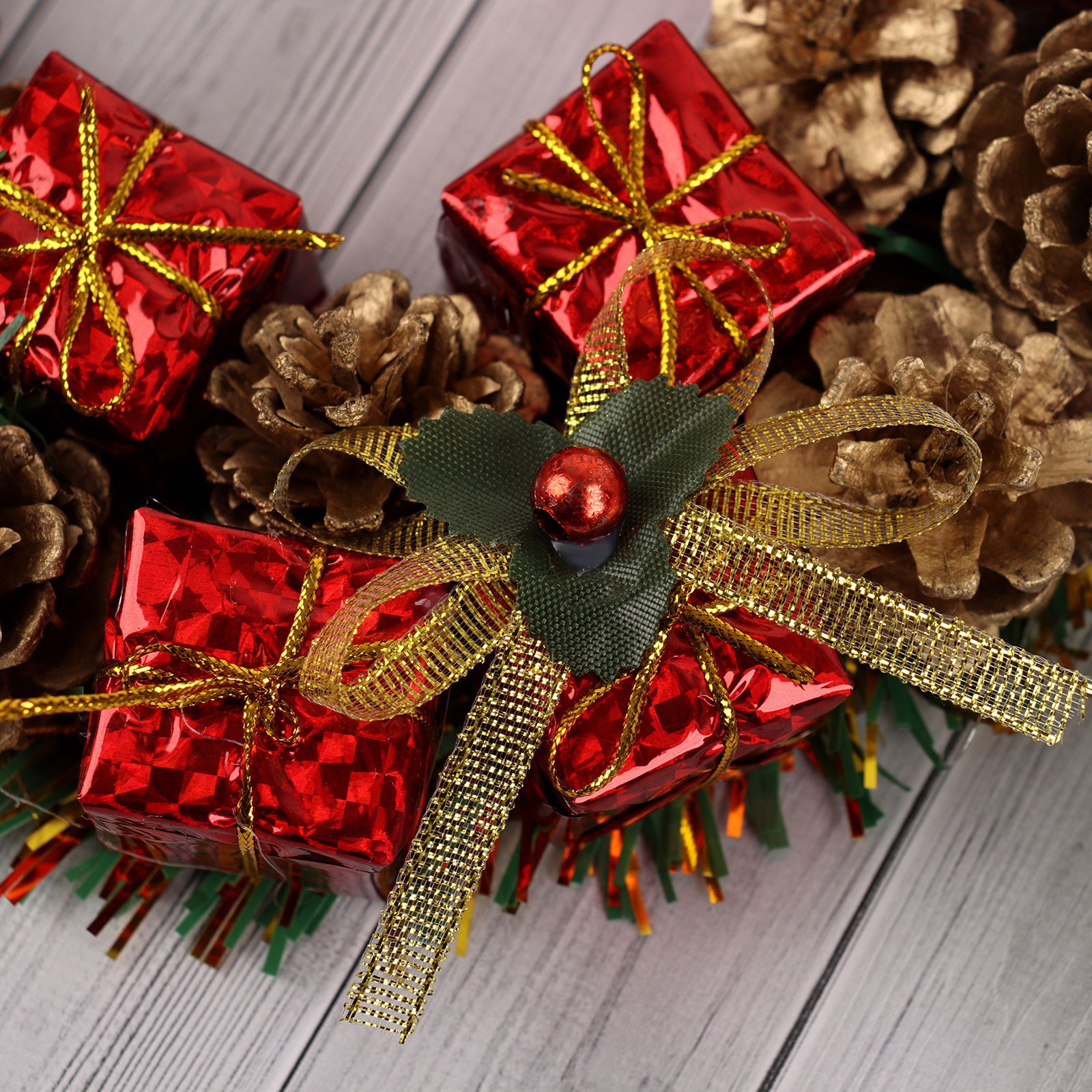 Венок новогодний d=22 см с шишками и подарками, 22х22х22 см., Зимнее волшебство, Китай