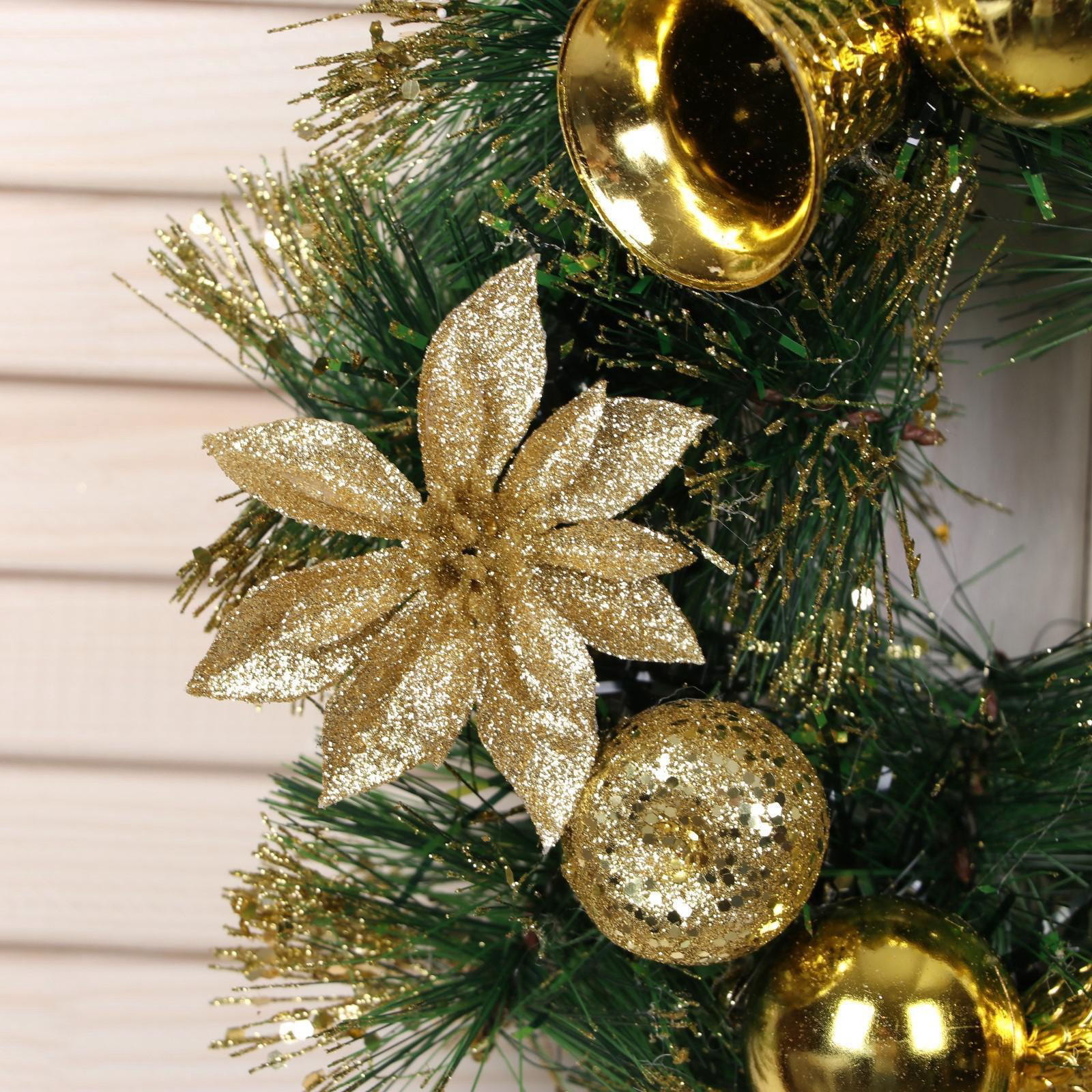 Венок новогодний d=25 см "Зимнее волшебство. Золотые цветочки и колокольчики", 25х25х24 см., Зимнее волшебство, Китай
