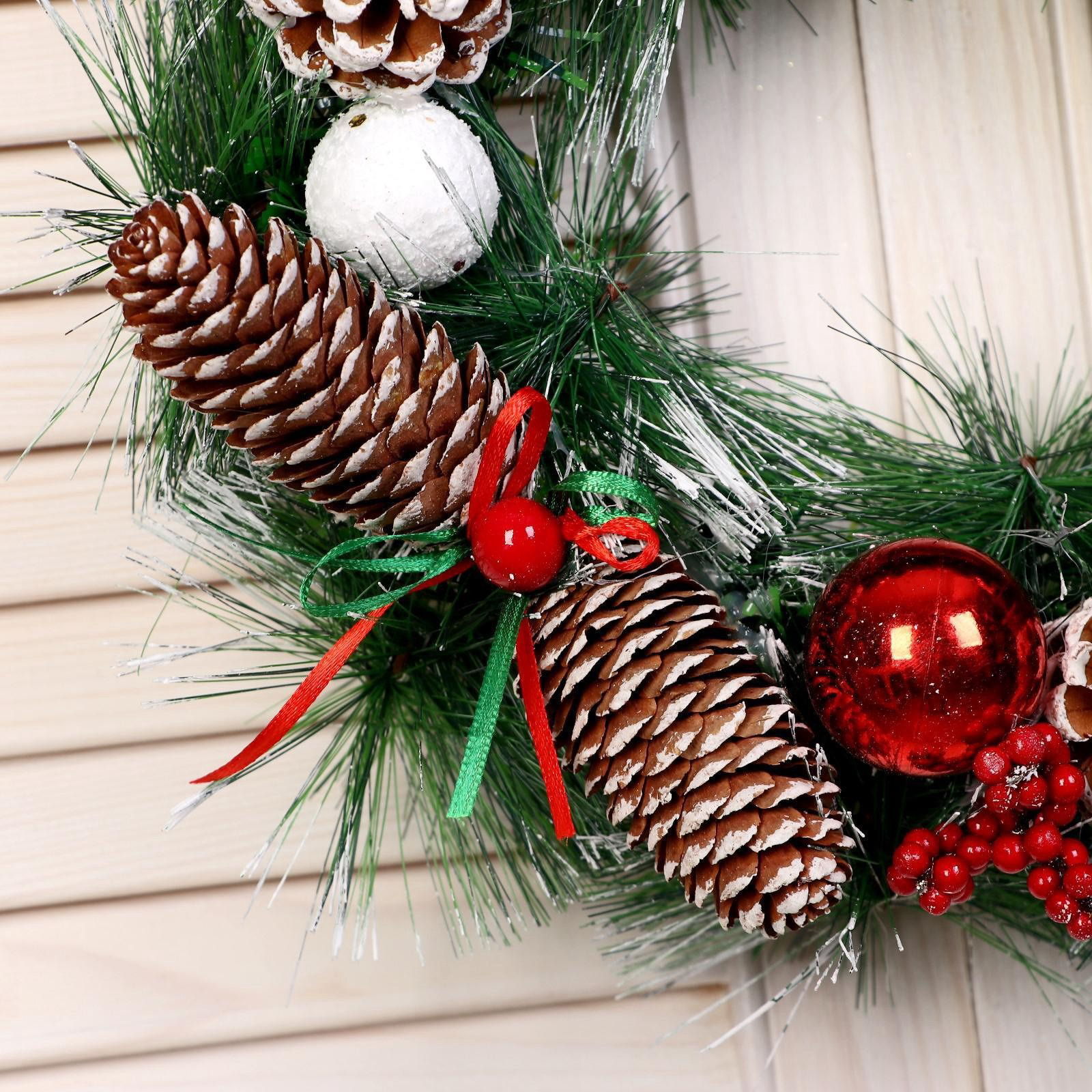 Венок новогодний d=30 см "Зимнее волшебство. Шишечки с шариками", 30х30х30 см., Зимнее волшебство, Китай