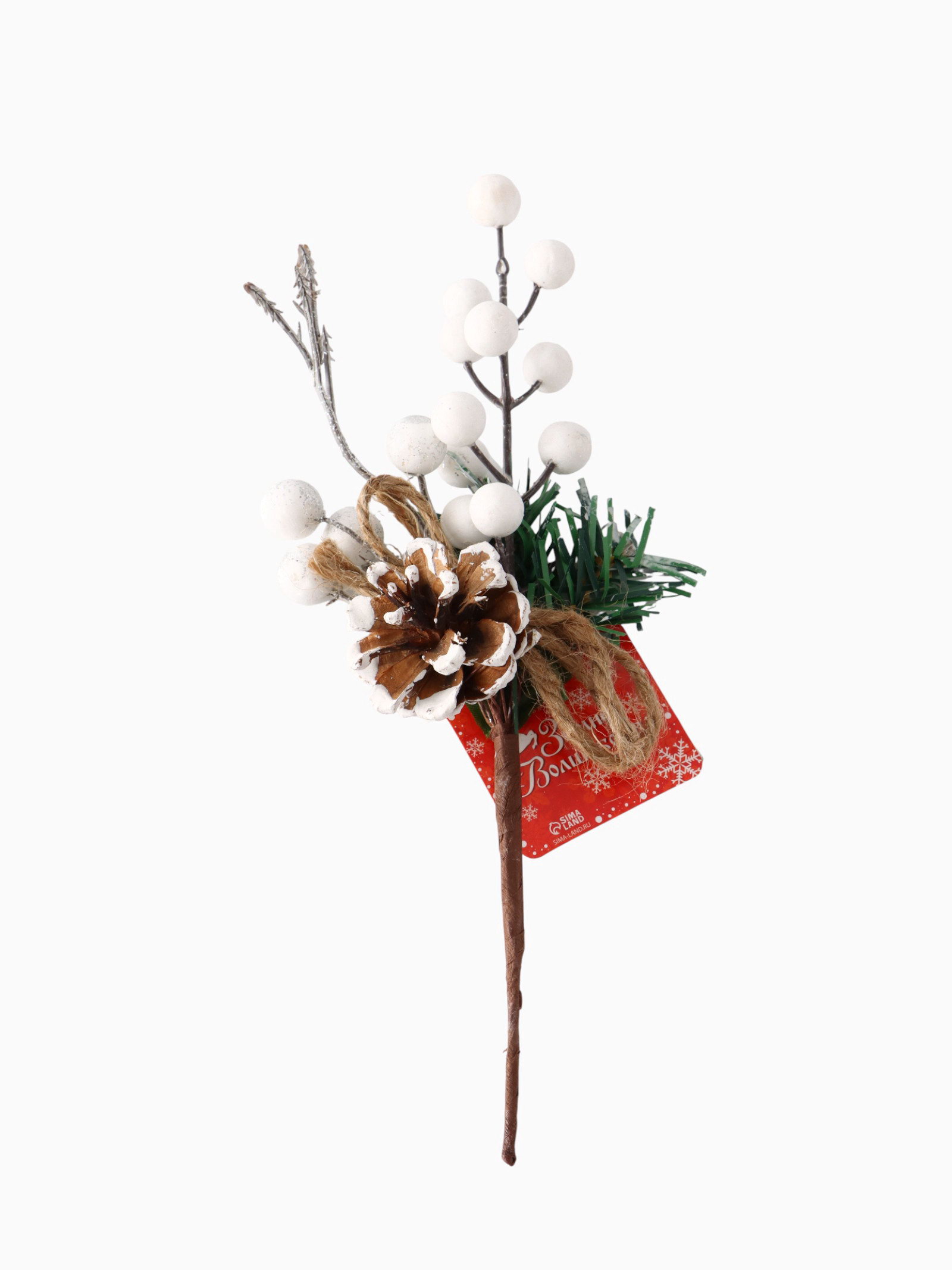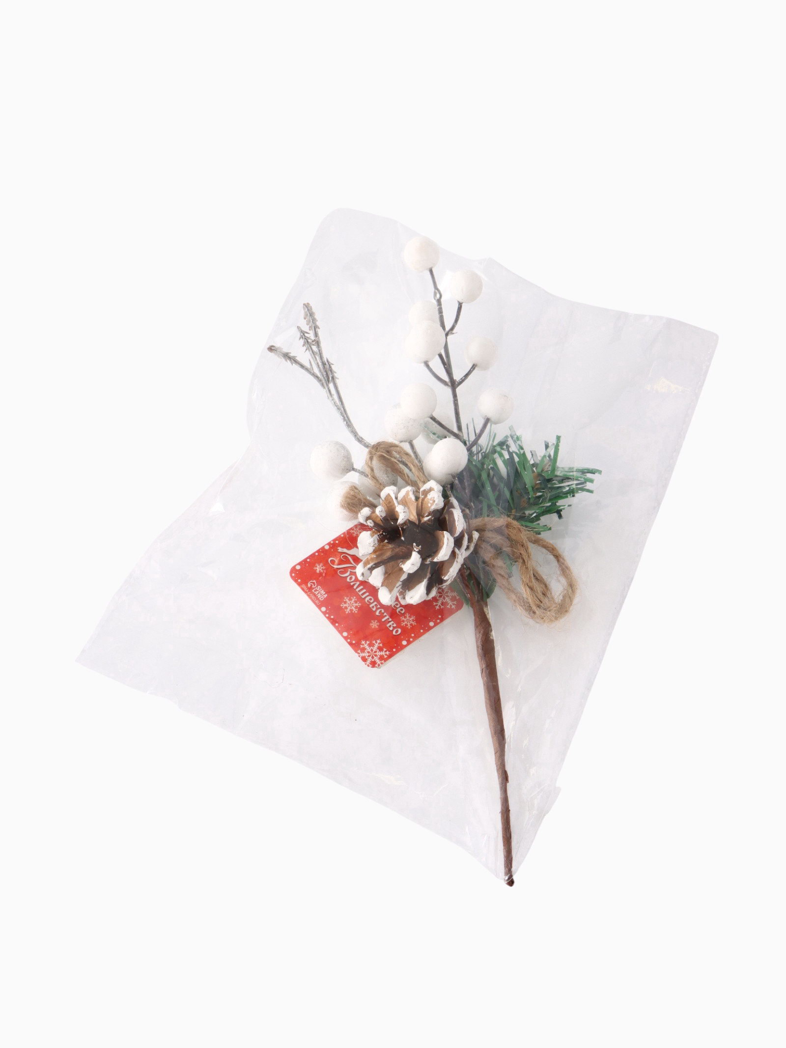 Еловая ветка декоративная "Зимнее волшебство. Чудо", 24 см, 24 см., Зимнее волшебство, Китай