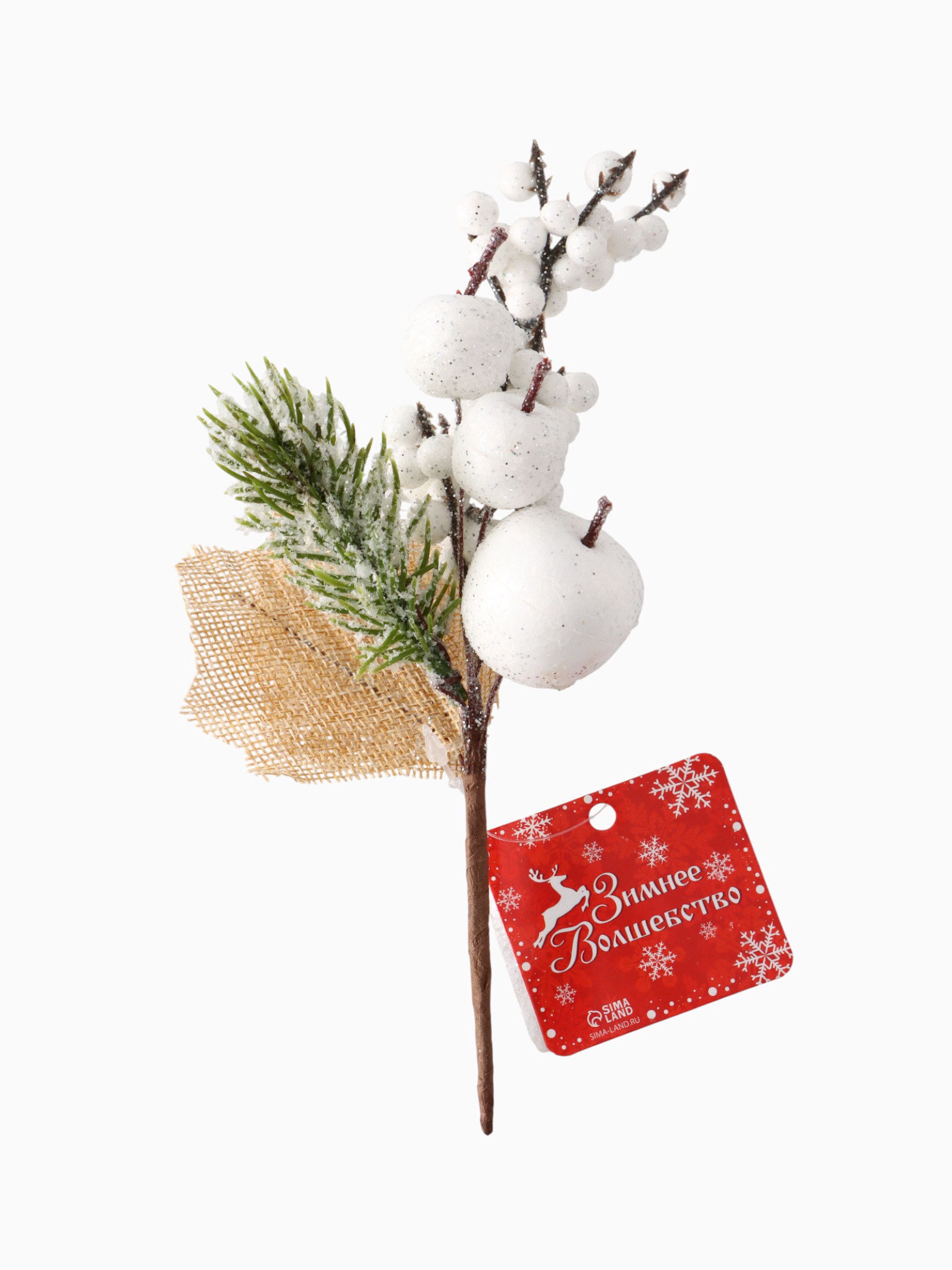 Еловая ветка декоративная "Зимнее волшебство. Грёзы", 19 см, 19 см., Зимнее волшебство, Китай
