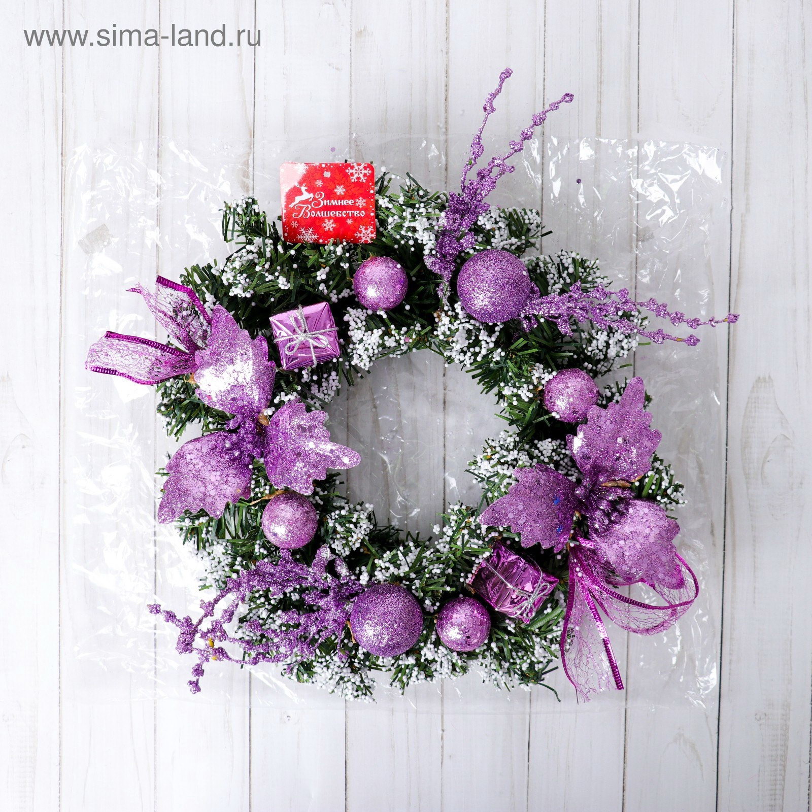 Венок новогодний d=24 см "Зимнее волшебство. Шарики и цветы", сиреневый, 24х24х24 см., Зимнее волшебство, Китай