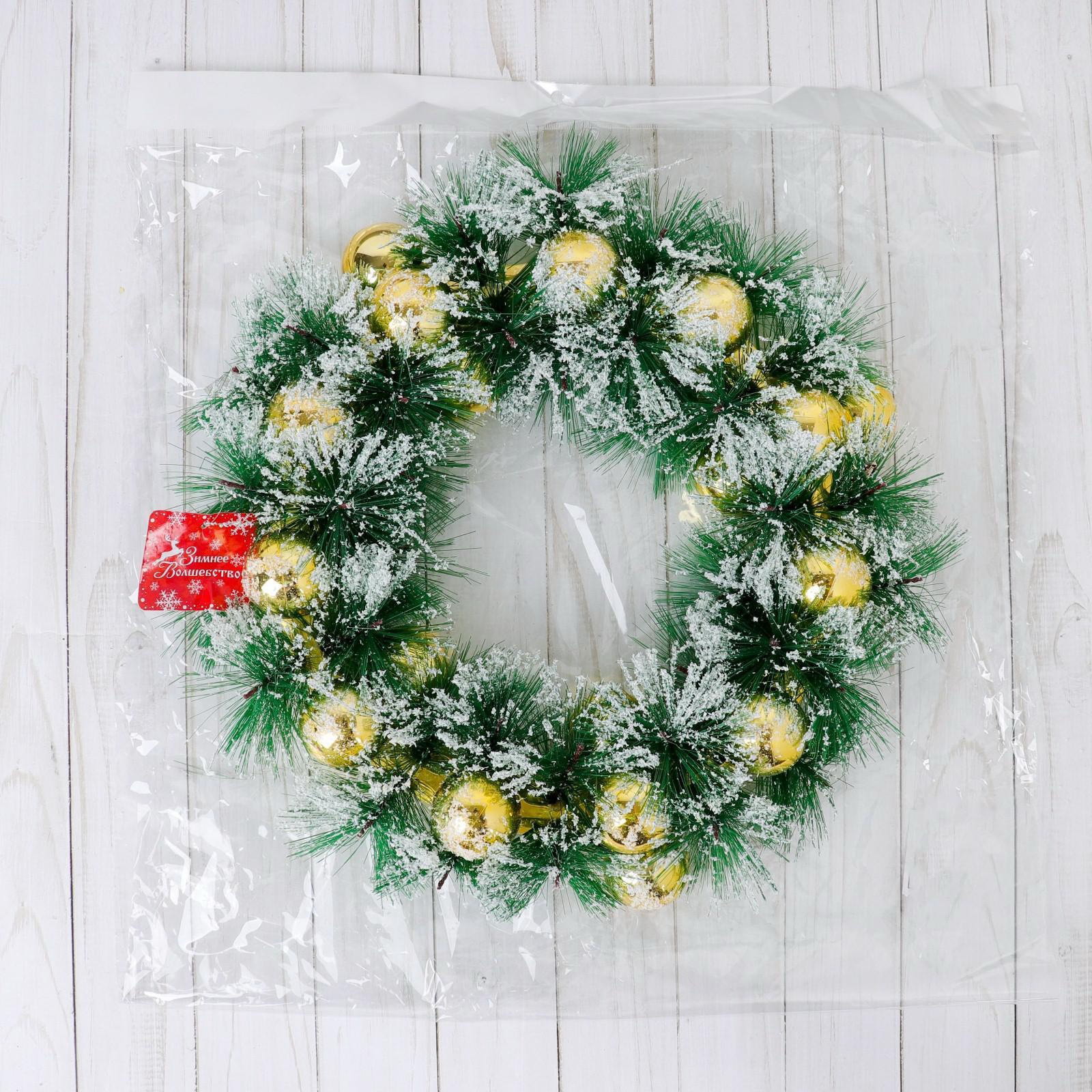 Венок новогодний d=30 см "Зимнее волшебство. Золотистые шарики в инее", 30х30х30 см., Зимнее волшебство, Китай