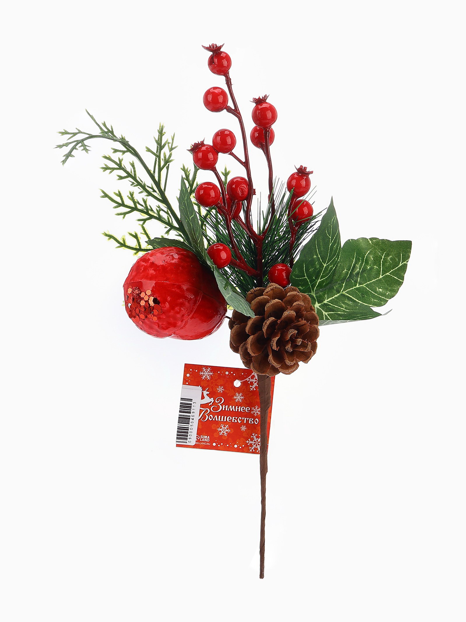 Еловая ветка декоративная "Зимнее волшебство. Очарование", 30 см, 30 см., Зимнее волшебство, Китай