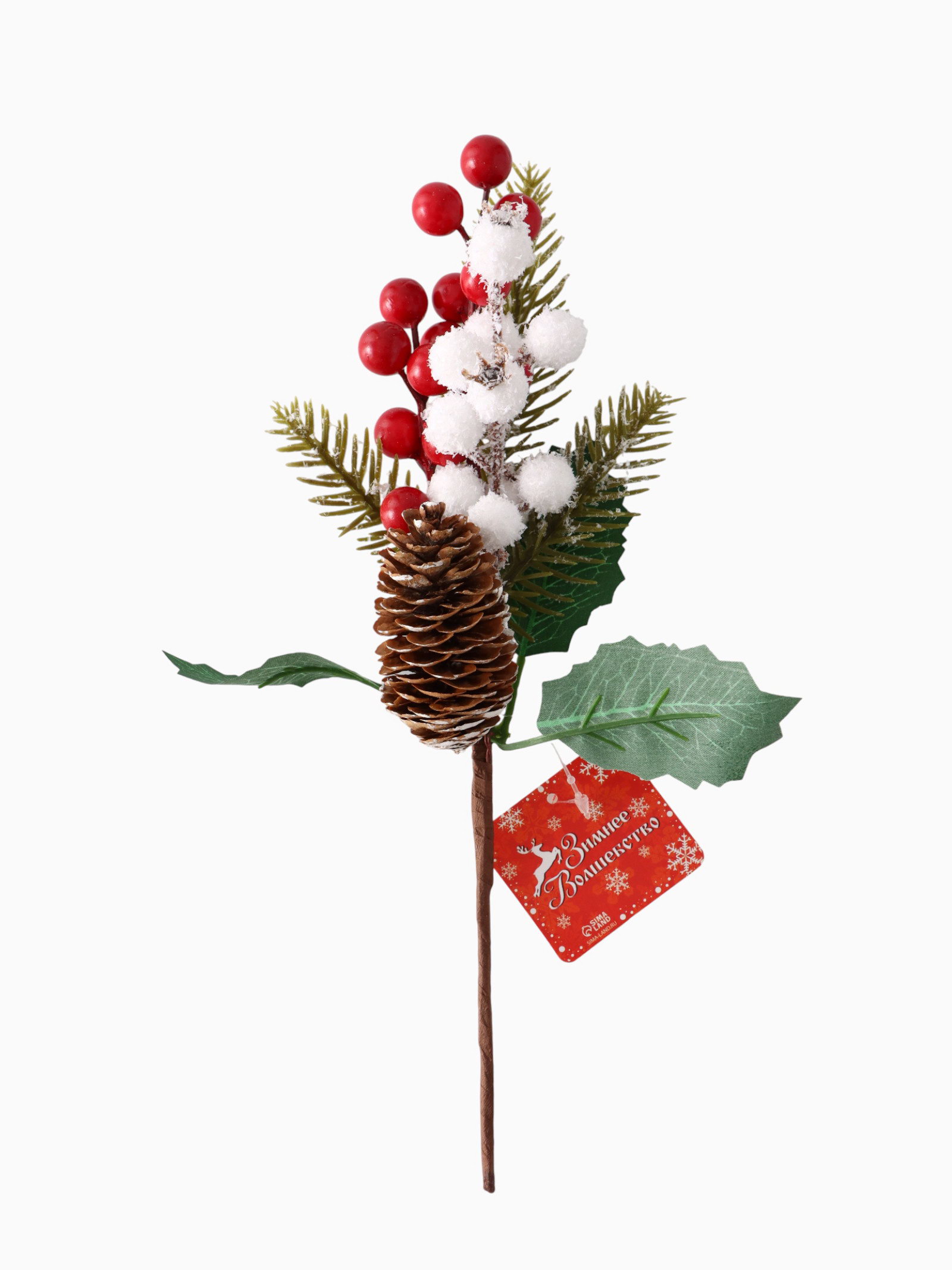 Еловая ветка декоративная "Зимнее волшебство. Очарование", 25 см, 25 см., Зимнее волшебство, Китай