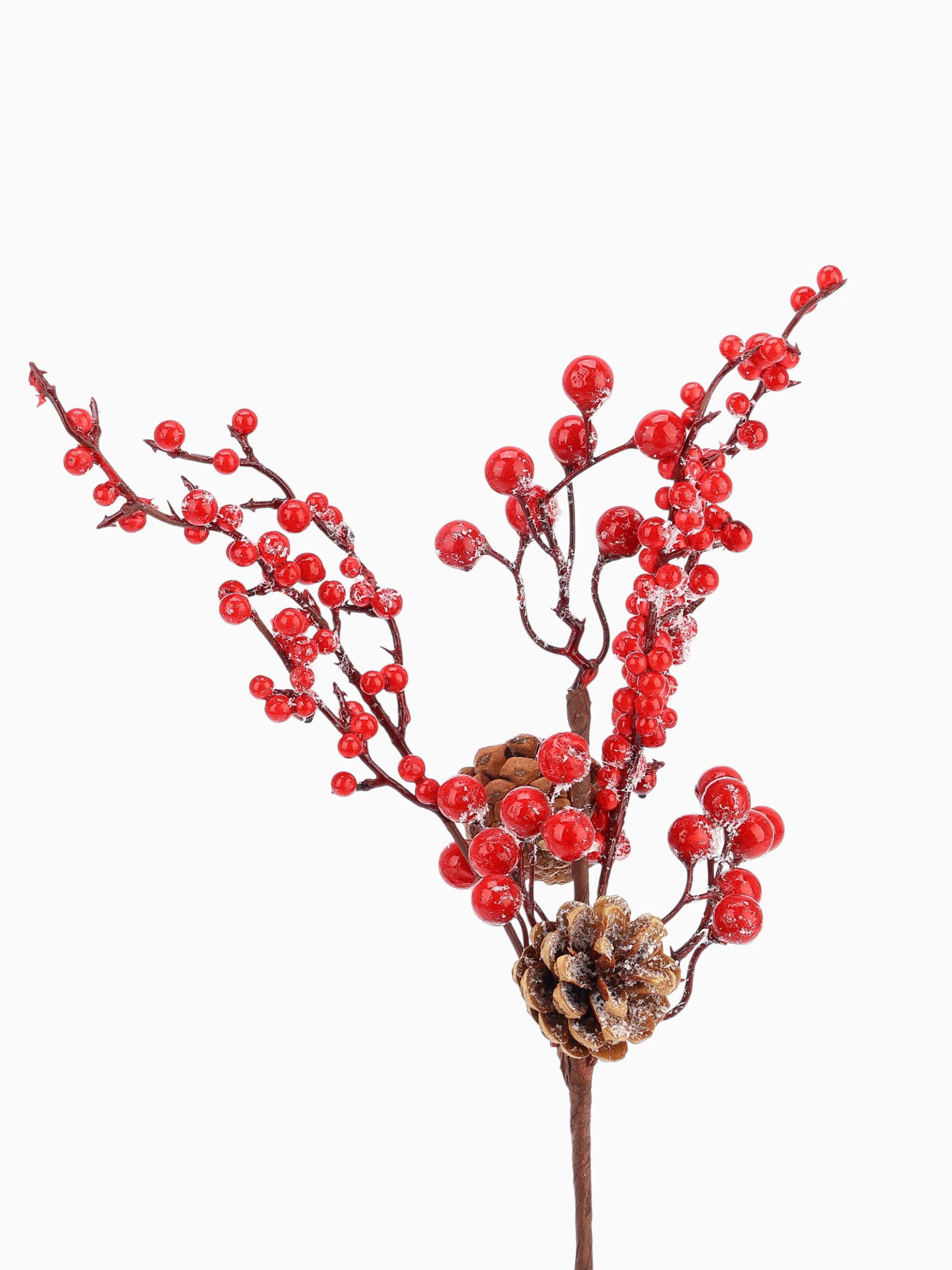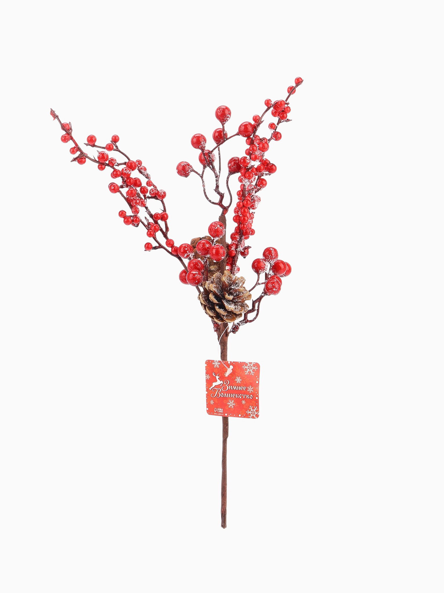 Еловая ветка декоративная "Зимнее волшебство. Очарование", шишки, замёрзшие ягоды, 35 см, 35 см., Зимнее волшебство, Китай