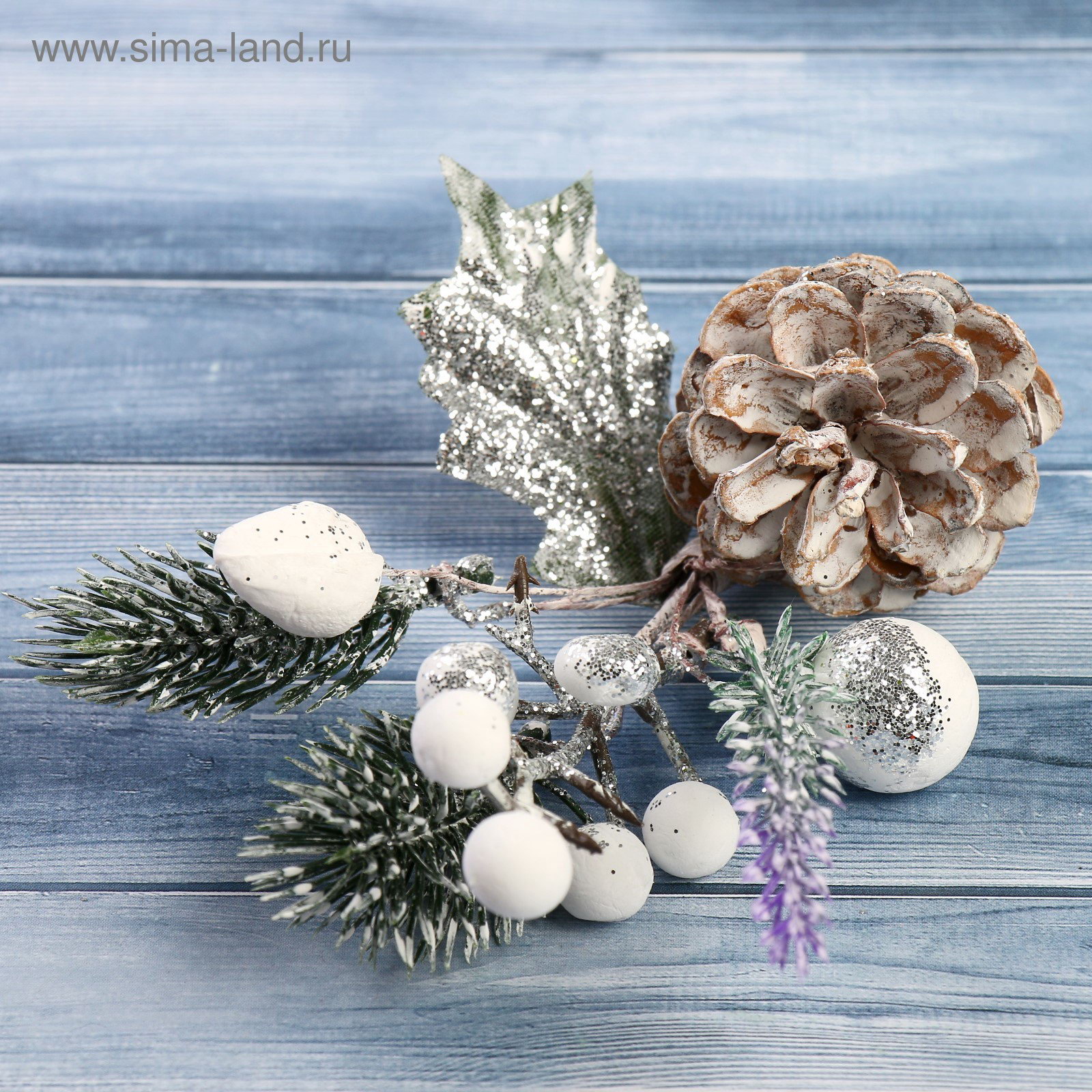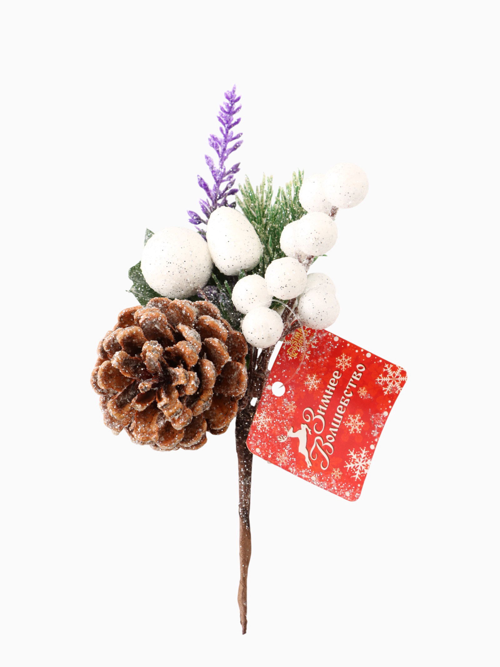 Еловая ветка декоративная "Зимнее волшебство. Грёзы", 16 см, 16 см., Зимнее волшебство, Китай