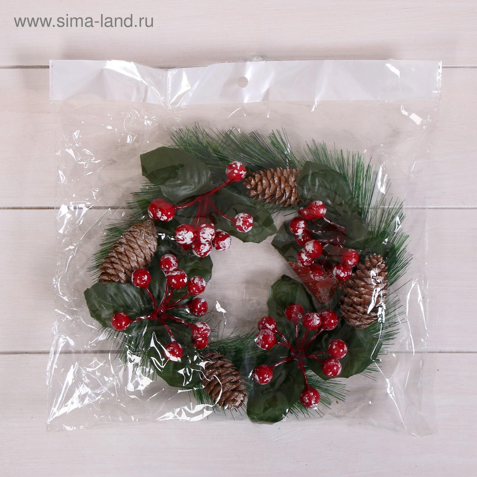 Венок новогодний d=16 см "Зимнее волшебство. Уютная сказка", с ягодами и шишками, 16х16х16 см., Зимнее волшебство, Китай