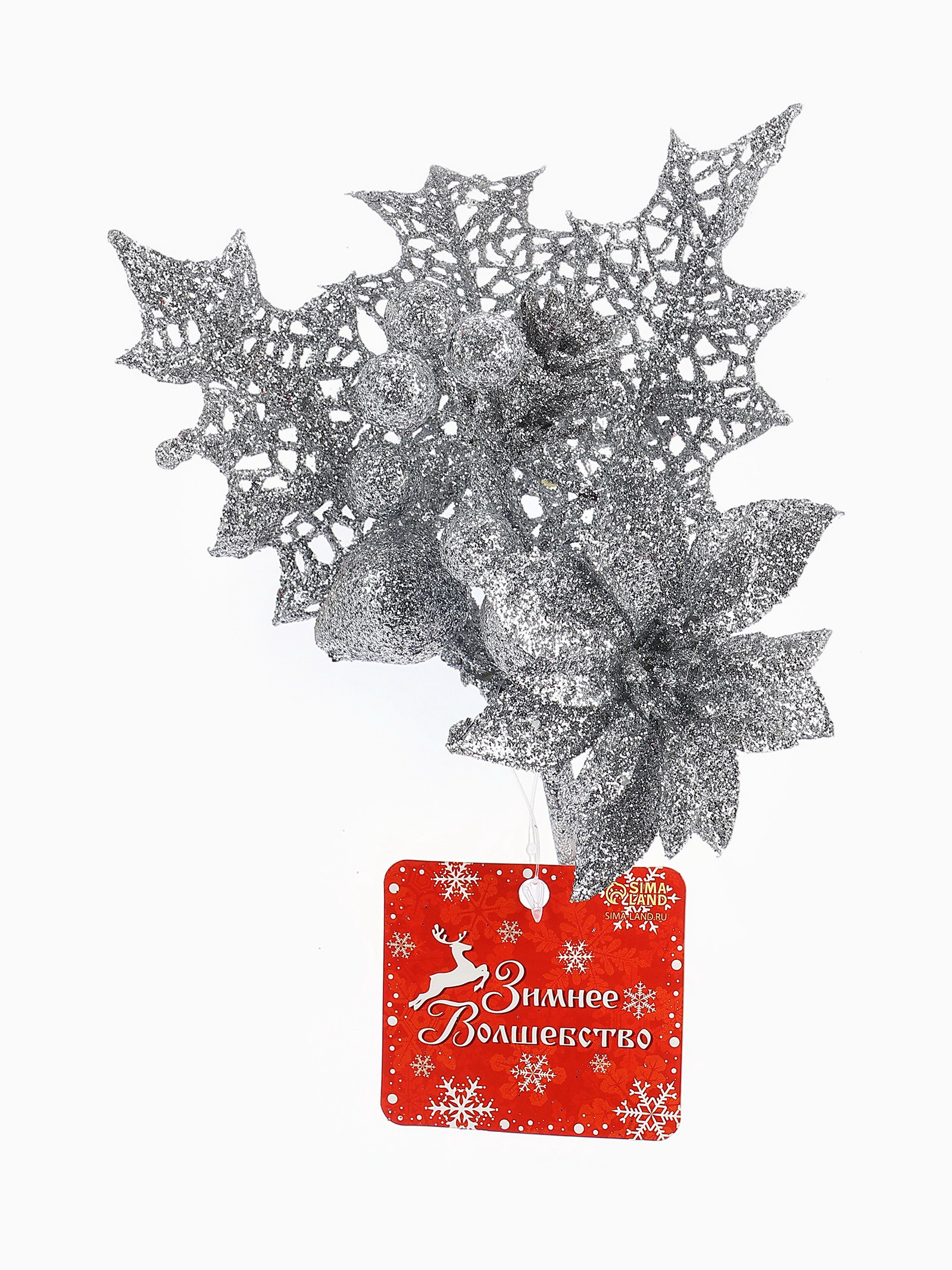 Еловая ветка декоративная "Зимнее волшебство. Мечты", 20 см, 20 см., Зимнее волшебство, Китай