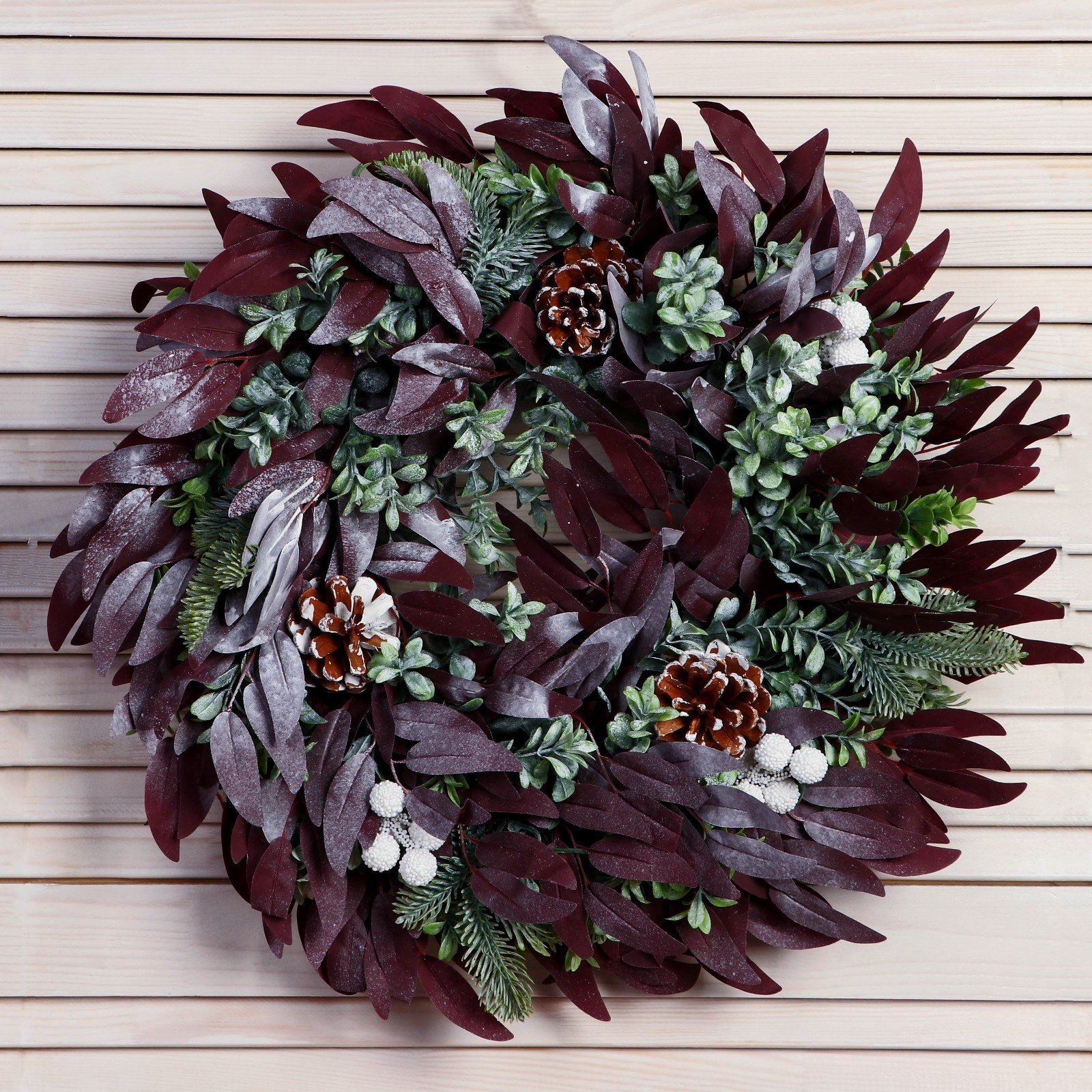 Венок новогодний d=38 см "Зимнее волшебство. Уютная сказка" листья, шишки, зелень, 38x38 см., Зимнее волшебство, Китай