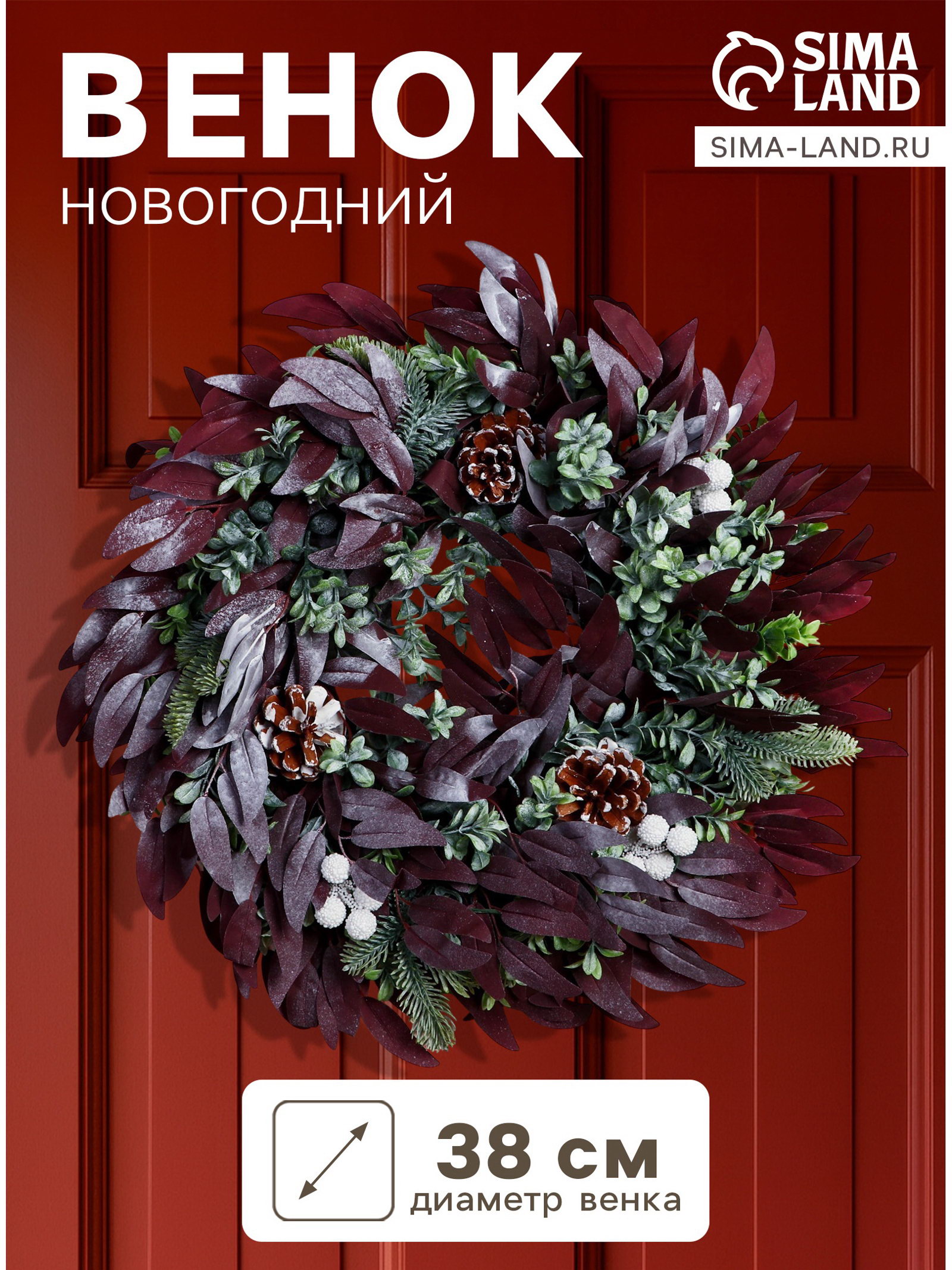 Цвет: Зелёный, Коричневый Стиль: Датский, Классика, Скандинавский Размер упаковки: 35 x 8.5 x 35 см. Размер упаковки: 35 x 8.5 x 35 см. tnved: 9505109000 Символ года: Нет Тематика праздника: Новый год Вид: Венки Новогодний венок диаметром 38 см с натуральным сочетанием зелёных листьев и коричневых шишек отлично впишется в интерьер в скандинавском или классическом стиле. Его оформление из пластика и дерева создаёт тёплую и уютную атмосферу, подходящую для украшения дверей и стен в зимний сезон. Особенности